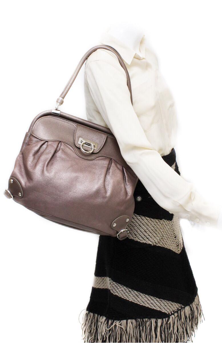 Bolsa Ferragamo Marrom Metalizada