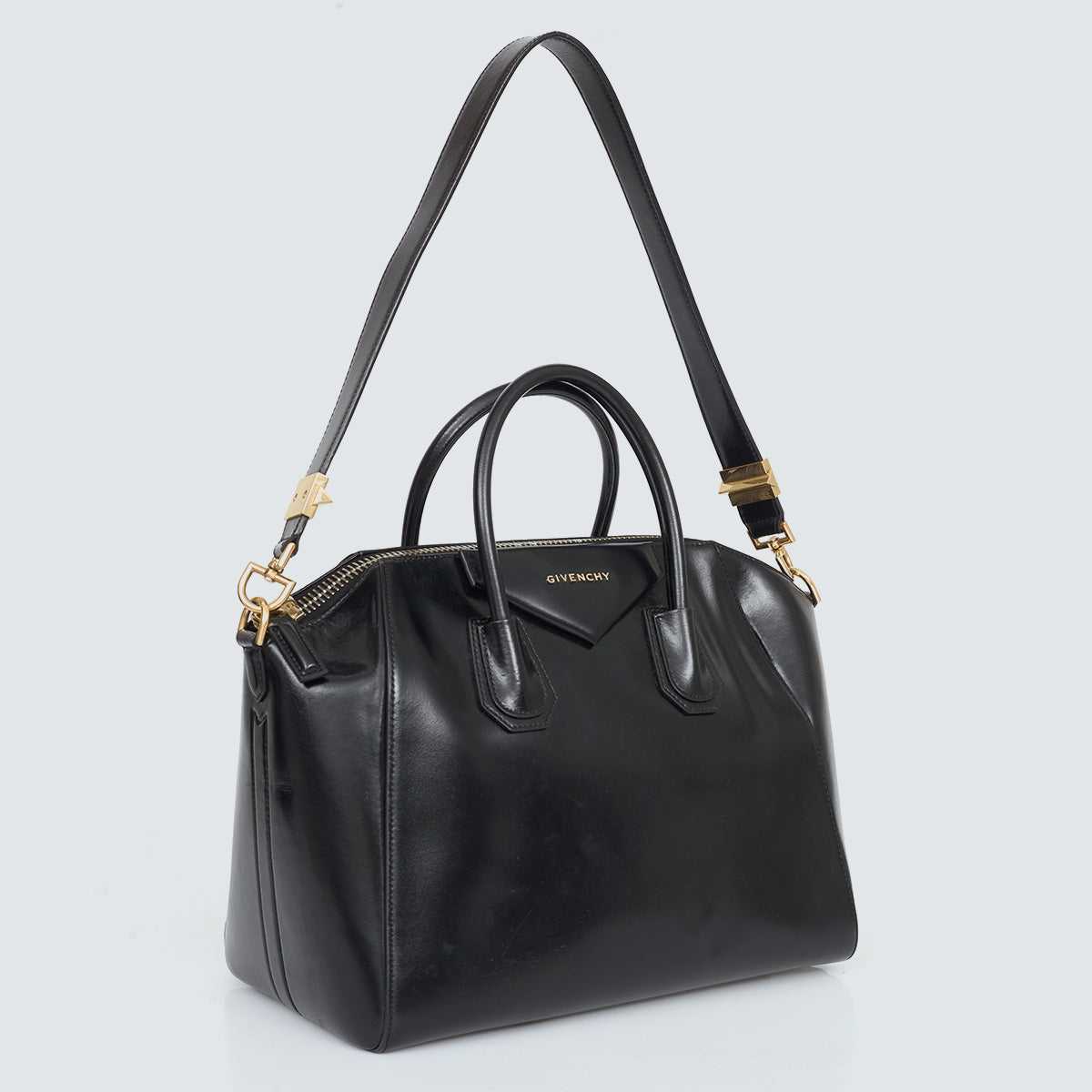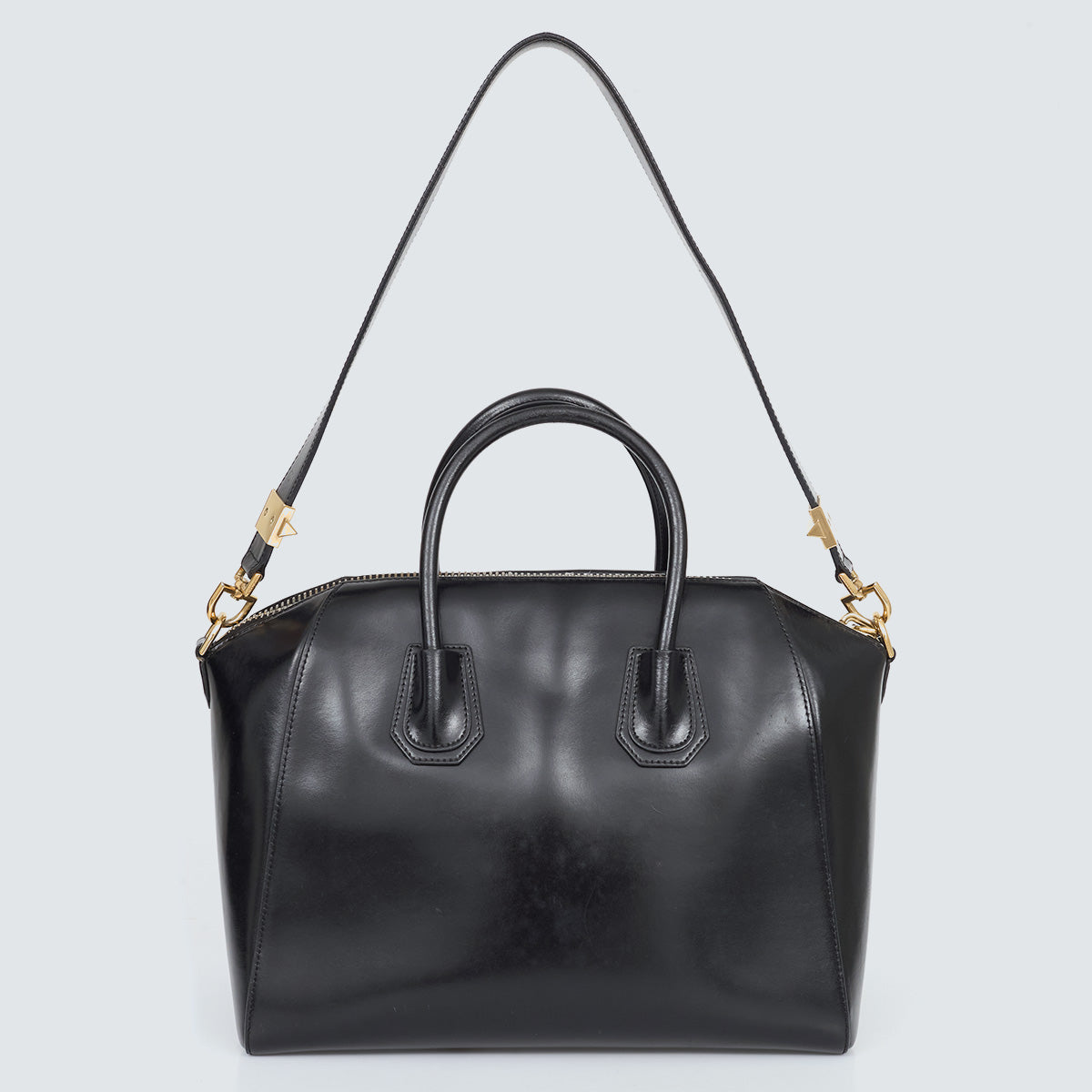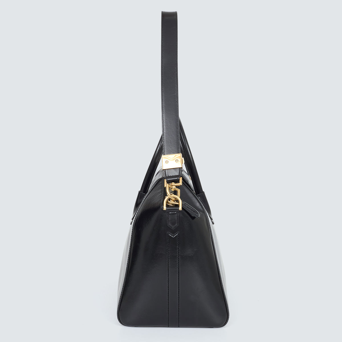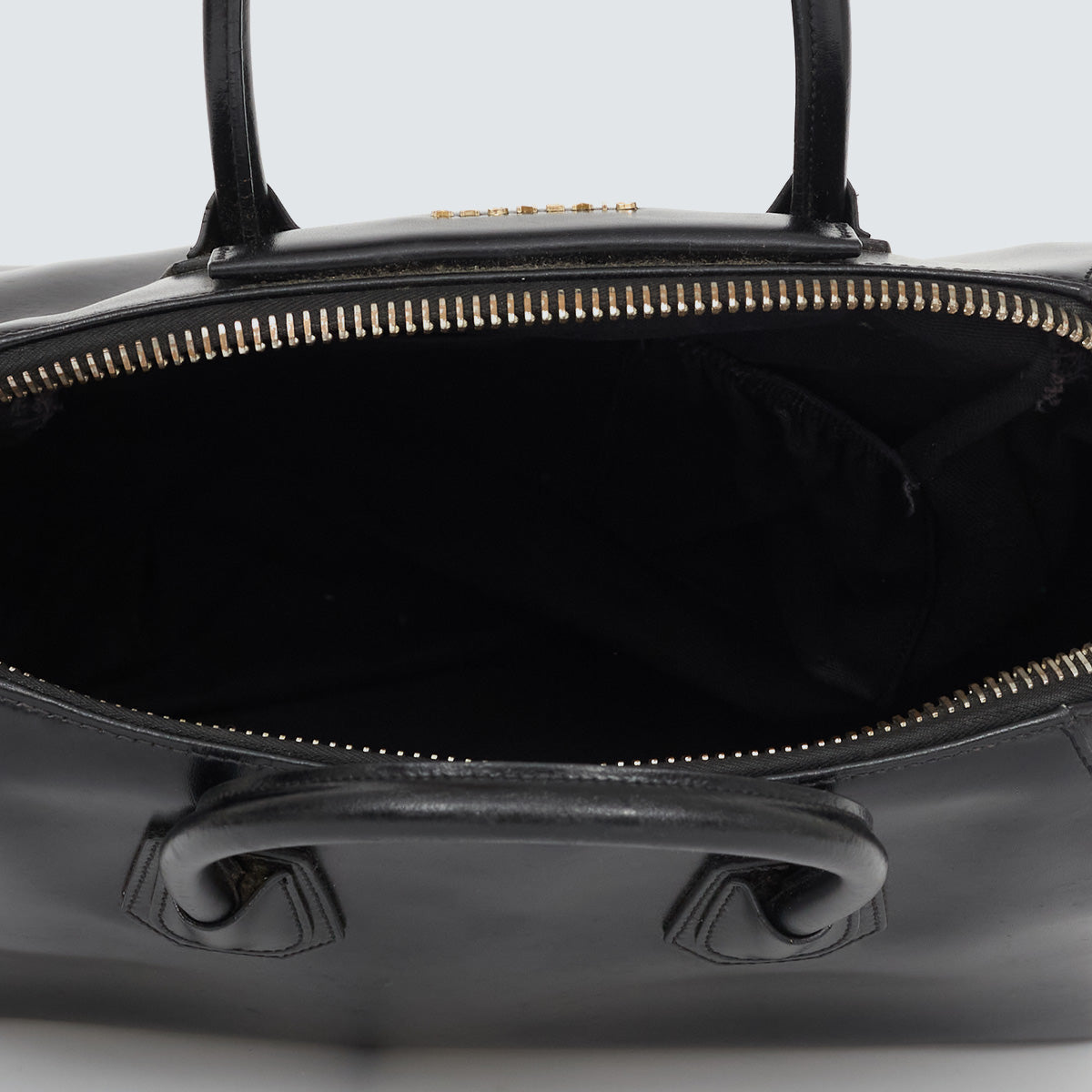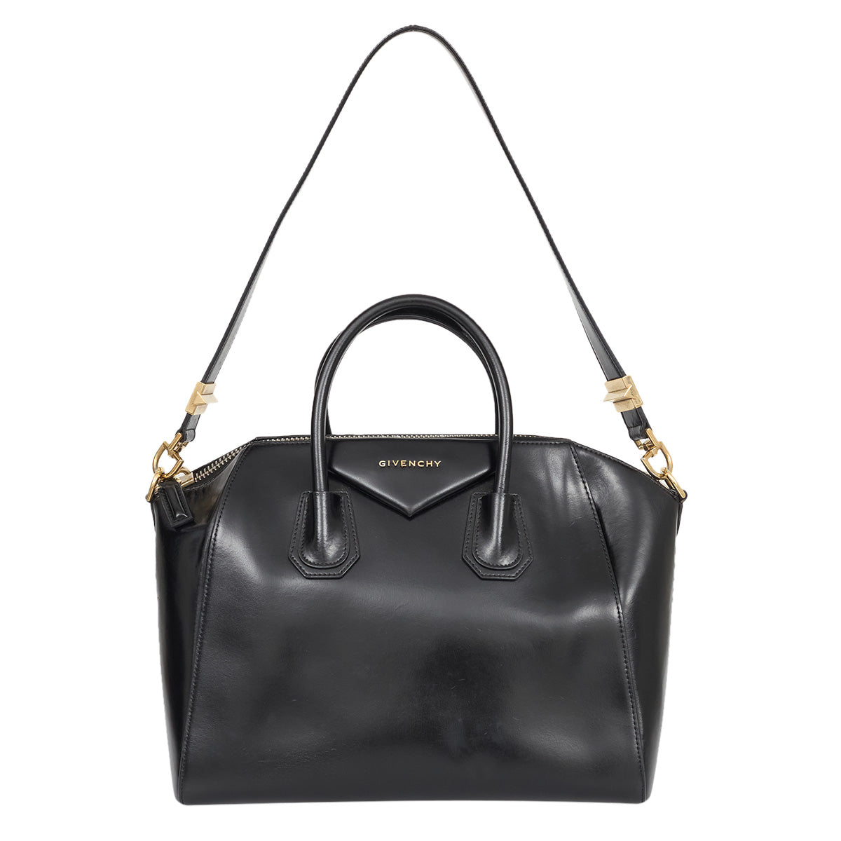 Detalhes: Bolsa Givenchy confeccionada em couro na cor preto. Modelo com alças curtas estruturadas e alça longa. Ferragens douradas. Compartimento interno amplo, com três bolsos. Fechamento principal em zíper.