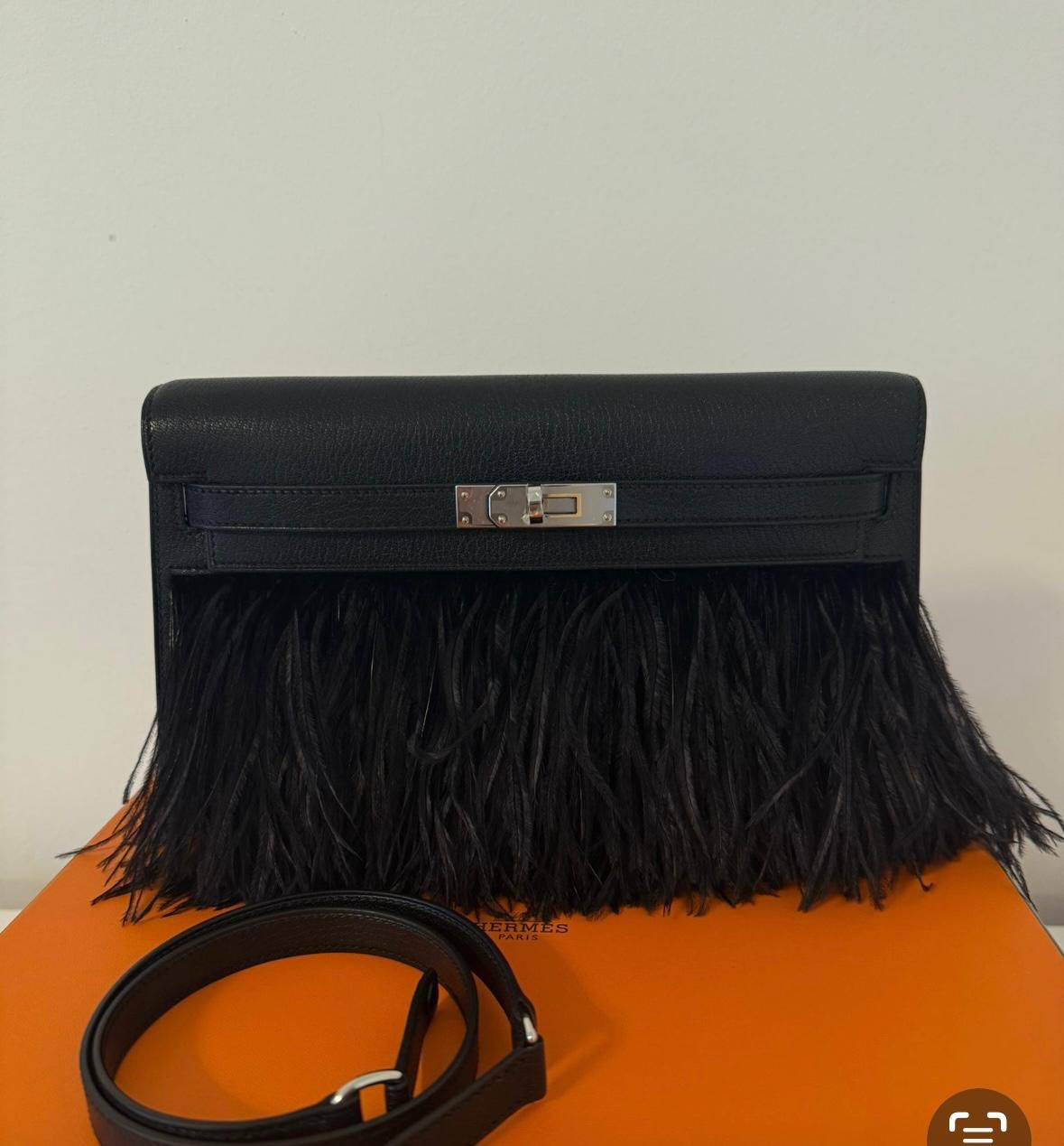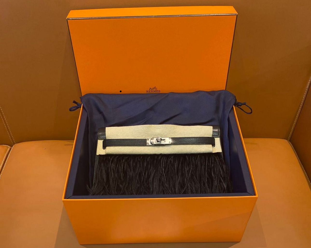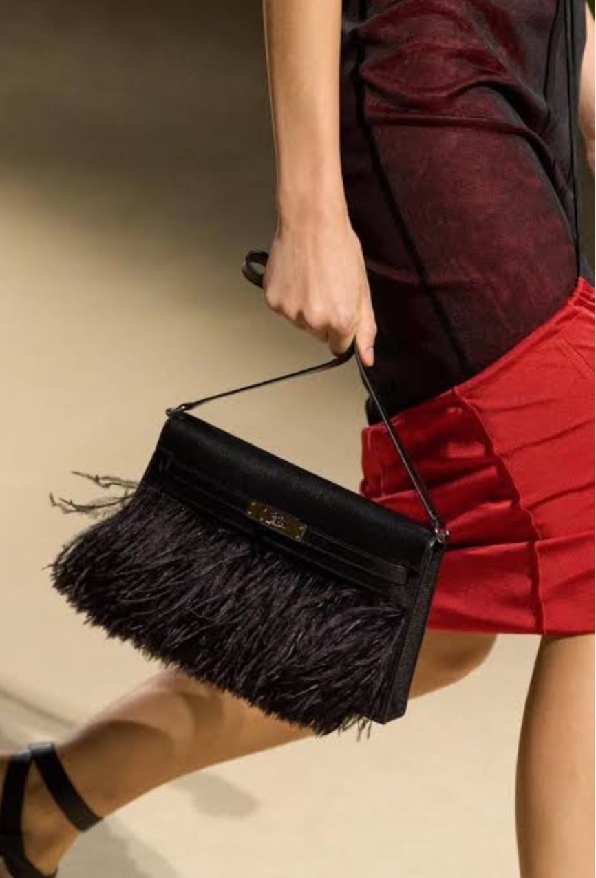 Detalhes: Modelo confeccionado em couro sellier na cor preta com detalhes de plumas na parte frontal. Possui ferragens palladium, alça curta e alça longa removível. Fecho por flap com botão de encaixe giratório. Bolsa de desfile. *Acompanha caixa azul e dust da marca*