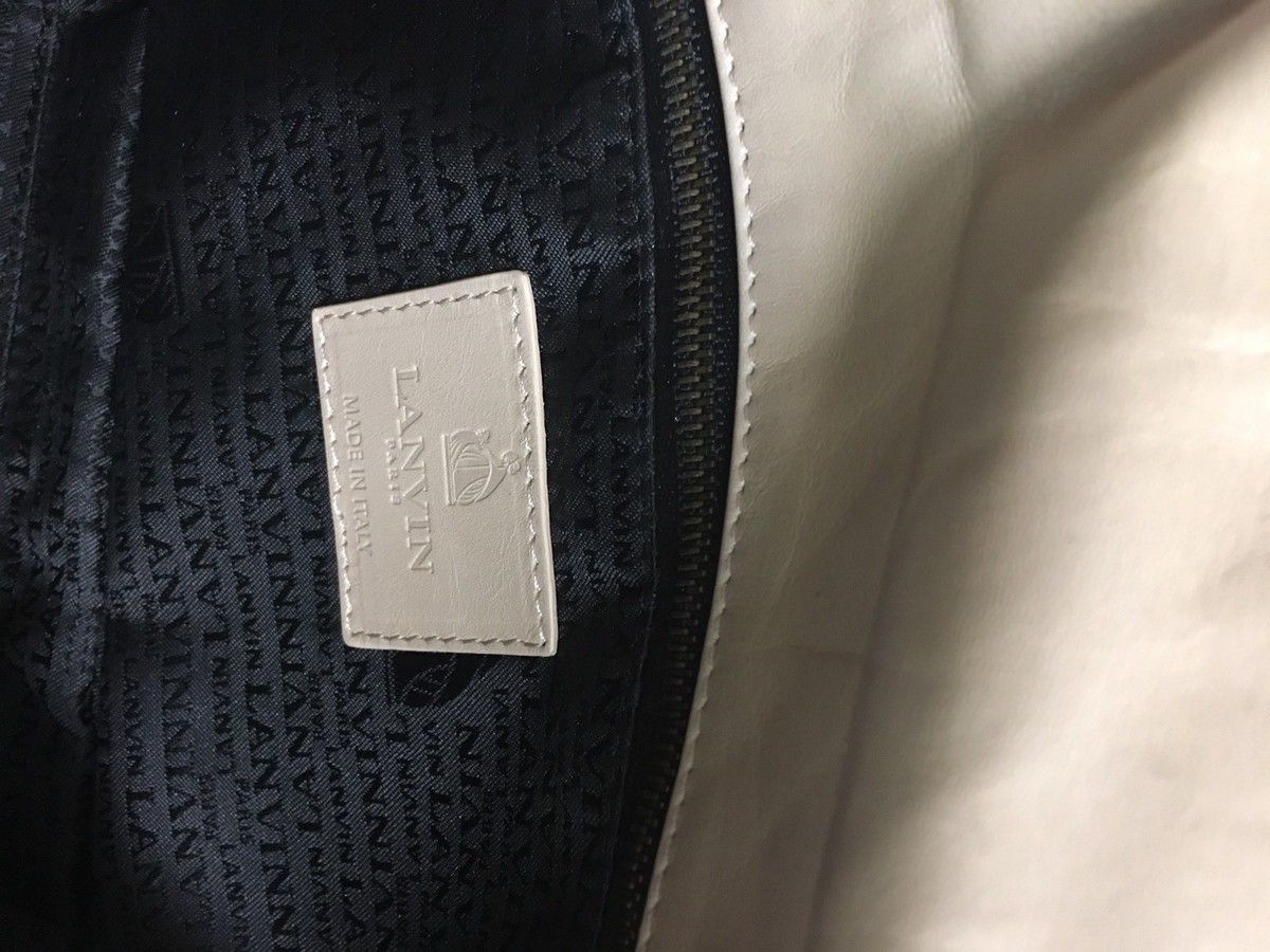 Detalhes: Bolsa Lanvin confeccionada em couro na cor bege. Modelo possui formato retangular, alça longa em corrente, compartimento interno único com dois bolsos, sendo um deles com zíper, fechamento por aba e sistema giratório.