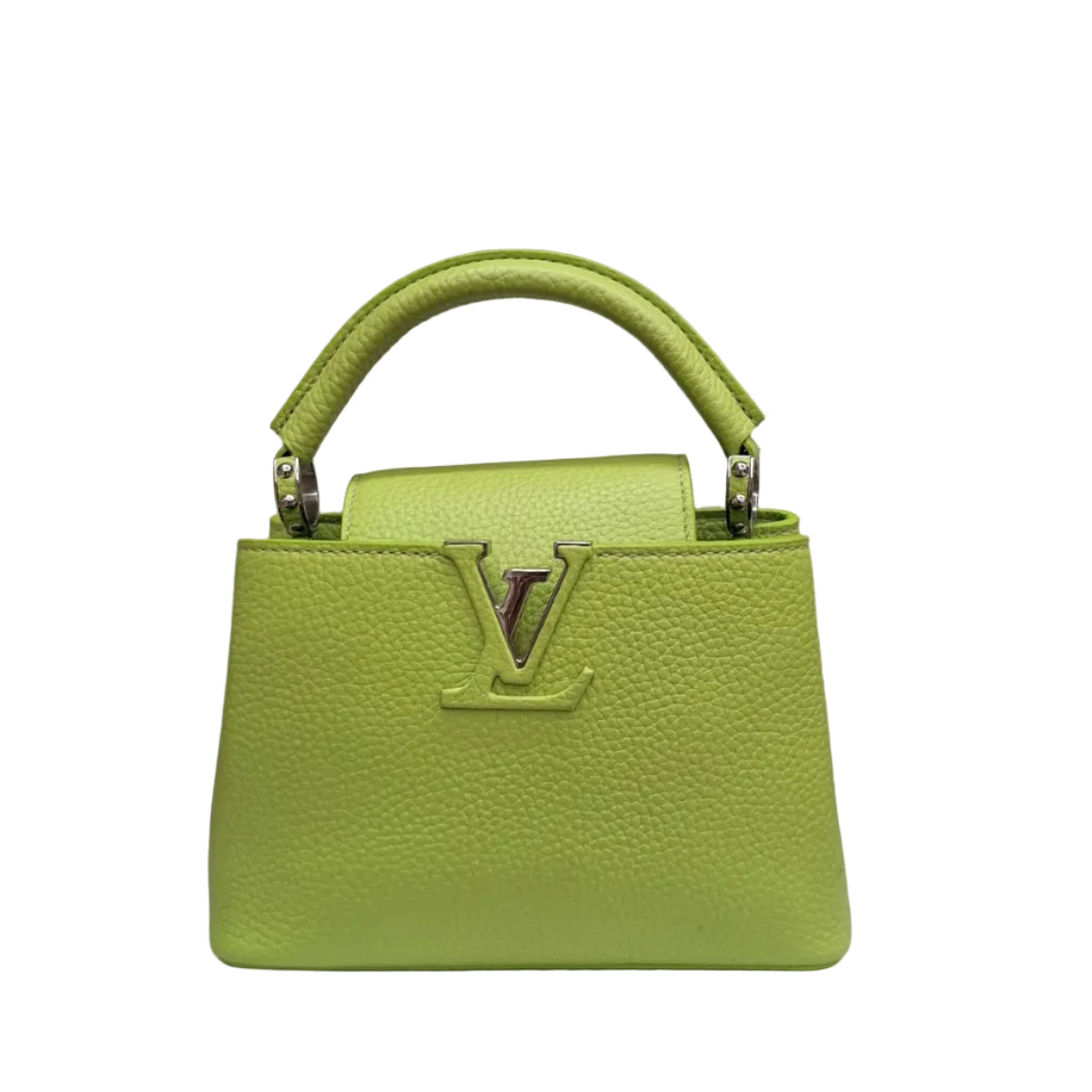 Detalhes: Bolsa LV confeccionada em couro verde. Modelo possui formato mini, alça de ombro e uma alça de mão.Ferragens prata, com detalhe do logo na parte frontal. Fecho principal em encaixe.