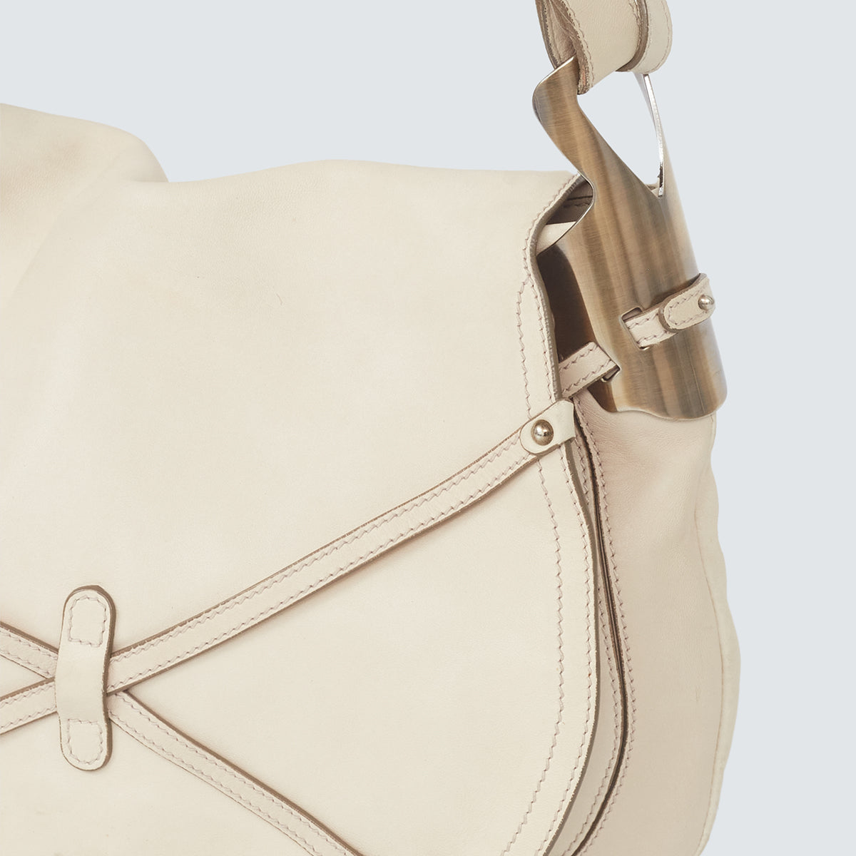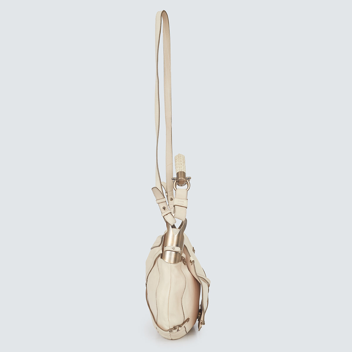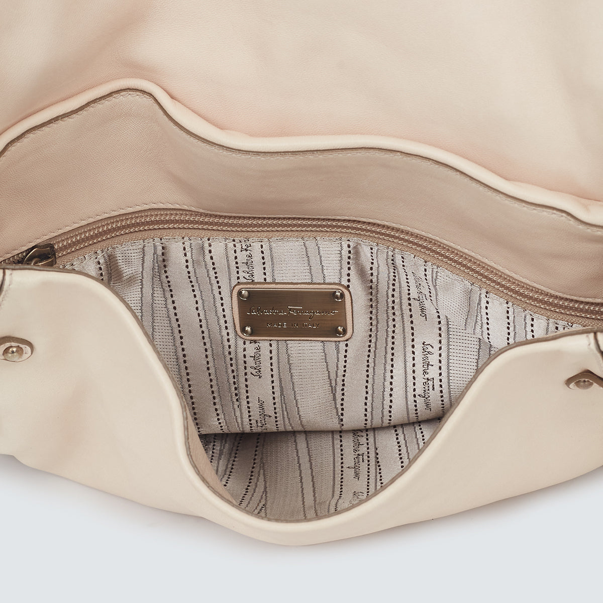 Detalhes: Bolsa Salvatore Ferragamo confeccionada em couro. Modelo possui formato arredondado, detalhe em tiras com ferragens, alça curta fixa e alça de ombro removível. Compartimento interno em tecido, contém 3 bolsos sendo um de fecho em zíper. Fechamento por aba.