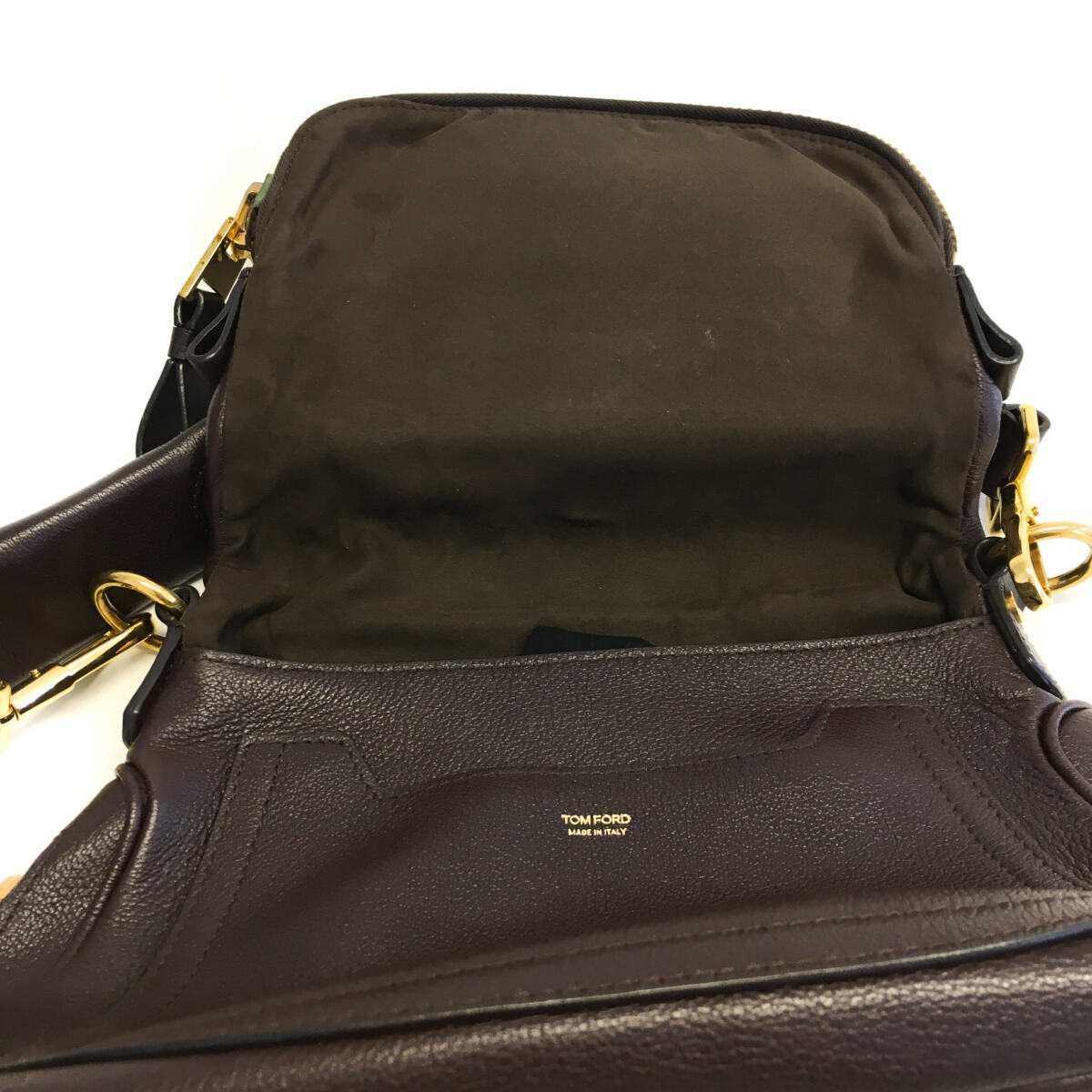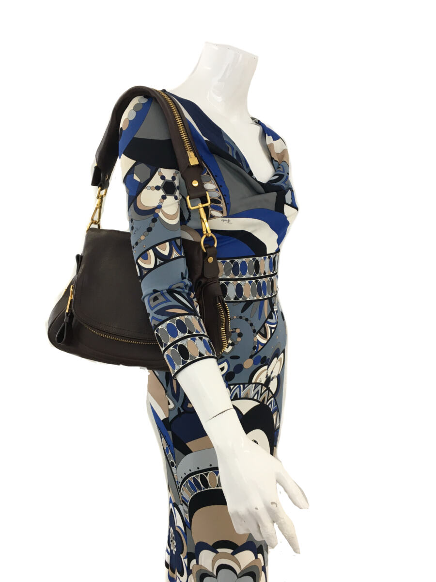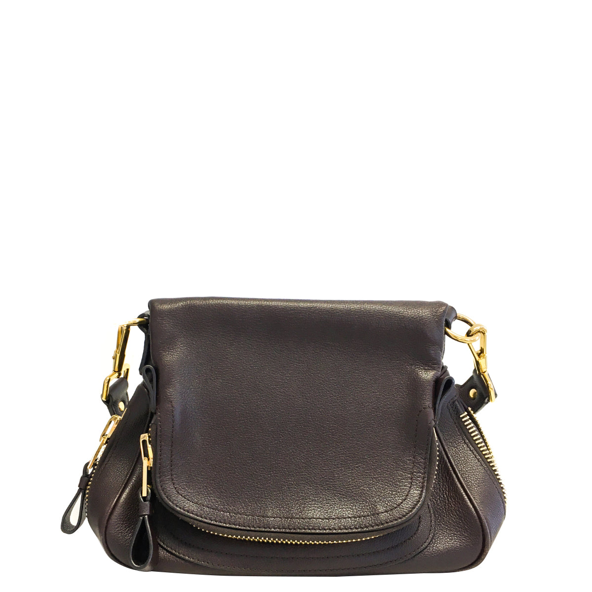Detalhes: Bolsa Tom Ford Jennifer Marrom Médio. O modelo possui alça única de ombro com detalhe de zíper, aba com compartimento para uso com fecho por zíper, recorte na base para expansão com fecho por zíper e ferragens douradas.