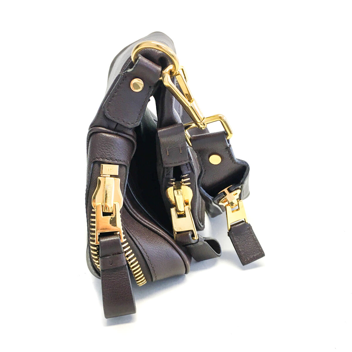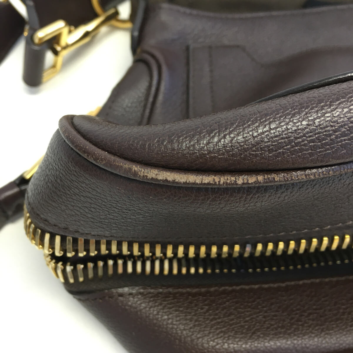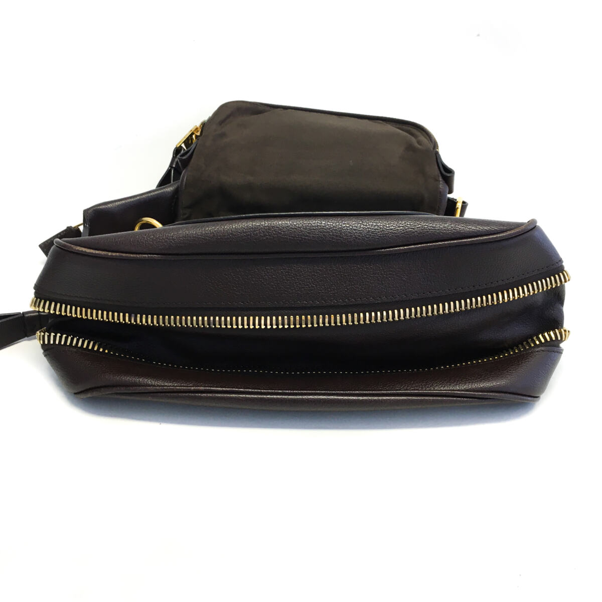 Detalhes: Bolsa Tom Ford Jennifer Marrom Médio. O modelo possui alça única de ombro com detalhe de zíper, aba com compartimento para uso com fecho por zíper, recorte na base para expansão com fecho por zíper e ferragens douradas.