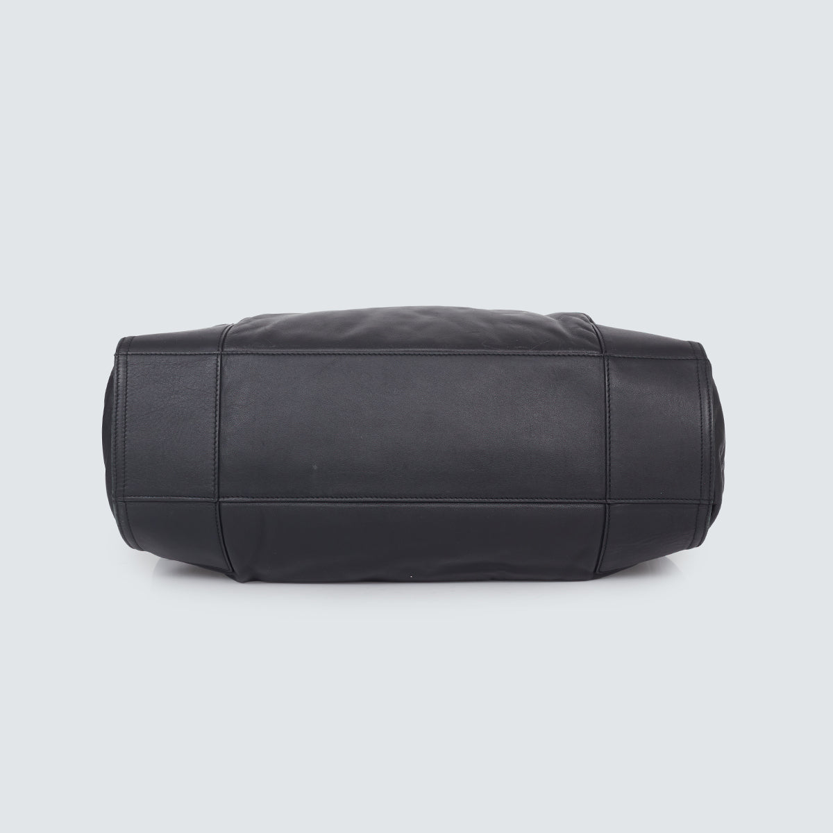 Detalhes: Bolsa Tory Burch confeccionada em couro na cor preta. Modelo possui formato quadrado, alça tote de couro, logo da marca frontal com um mini bolso. Parte interna ampla, com dois bolsos. Fechamento em botão magnético.