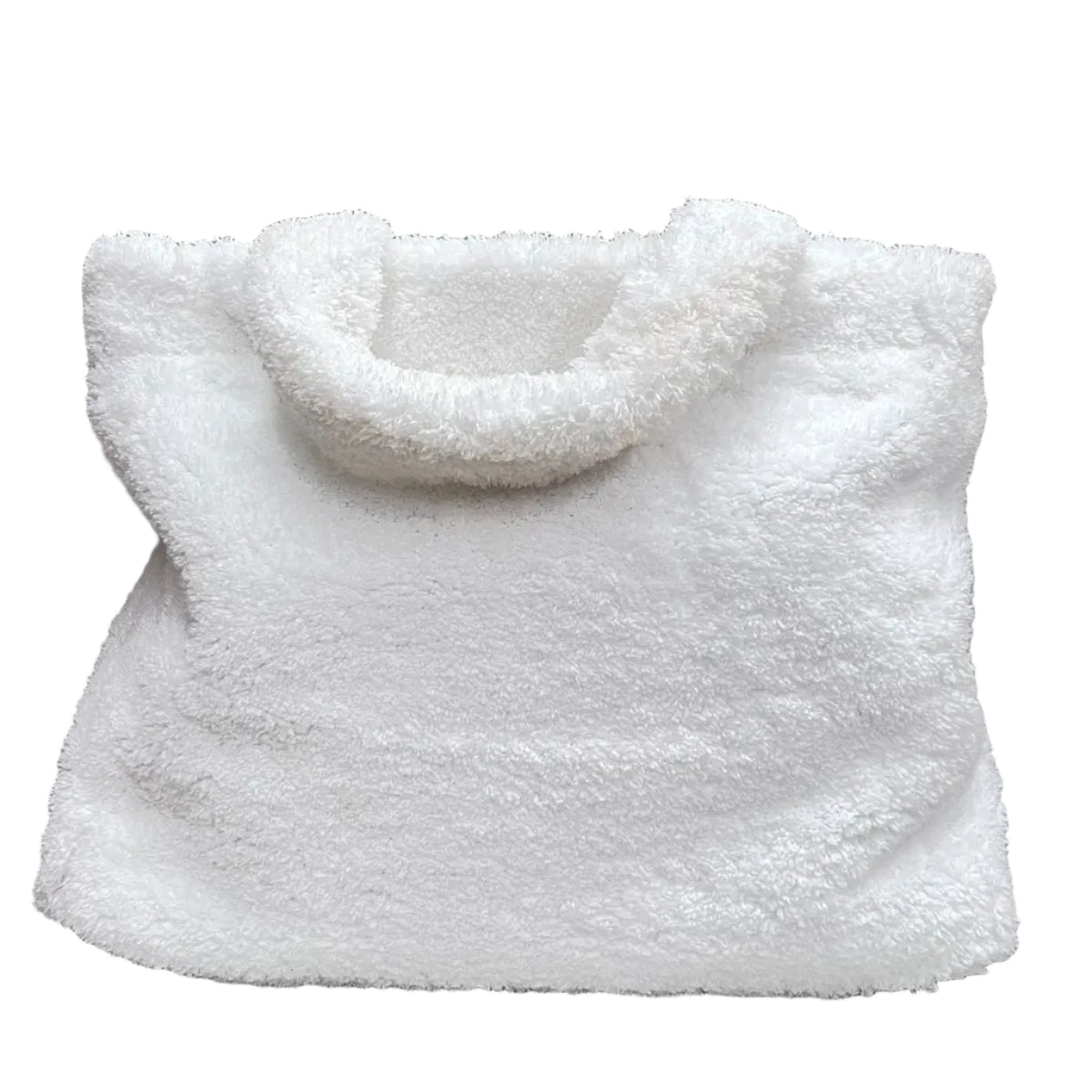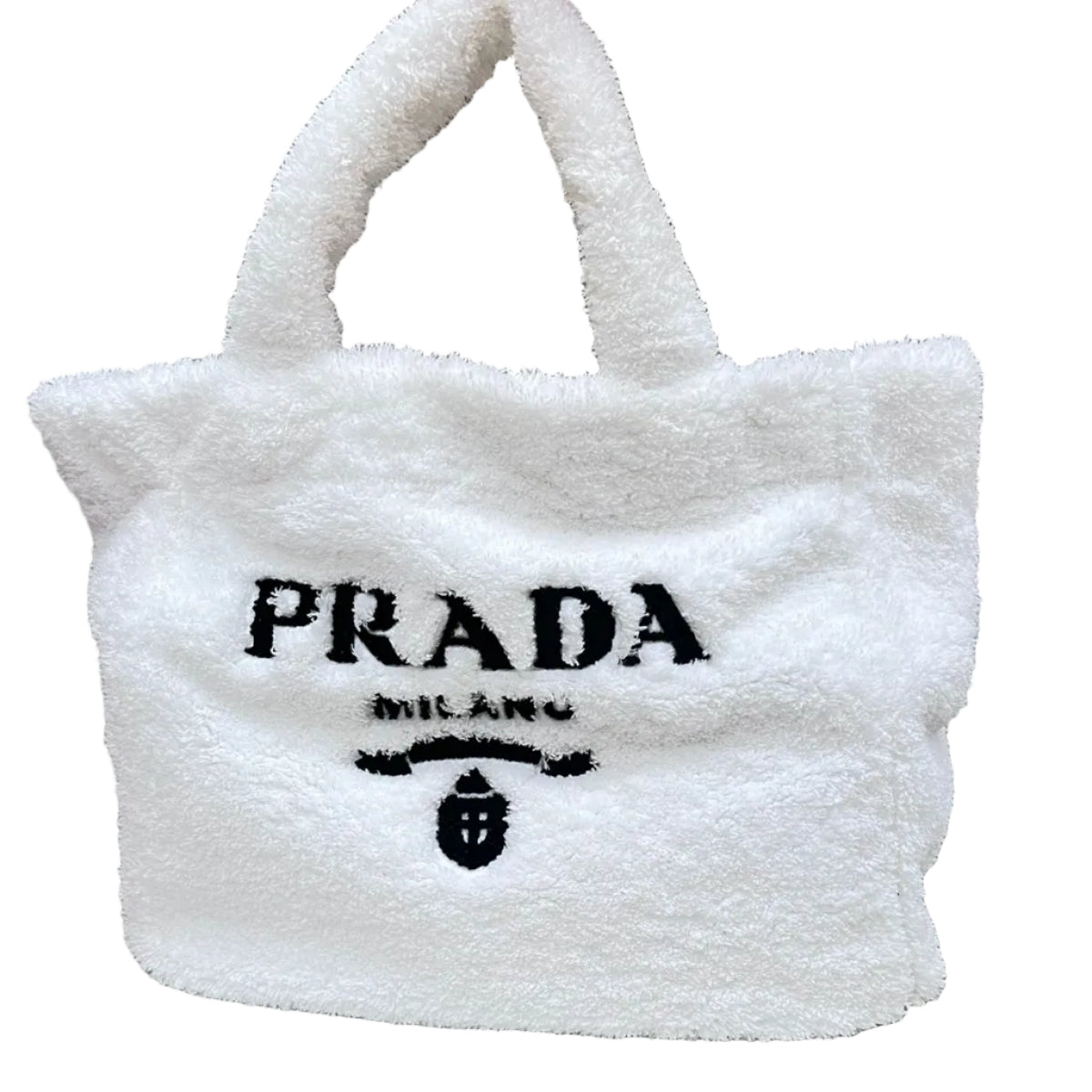 Detalhes: Bolsa Prada peluciada na cor branca, modelo grande com alças de ombro estruturadas e logo ´´PRADA MILANO`` bordado em preto na parte frontal. A peça possui acabamento macio em efeito felpudo, na lateral possui plaquinha triangular metálica com o nome da marca aplicado. Bolso interno de compartimento único em tecido, com um bolso de zíper.
