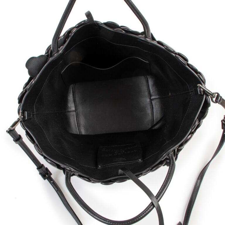 Detalhes: Bolsa valentino confeccionada em couro, na cor preta, com design diferenciado em formato de petalas de rosa, alça fixa de mão dupla e alça ajustavel de ombro. Possui amplo espaço interno, forro em couro e acompanha um bolso para cartão. Fechamento por amarração.