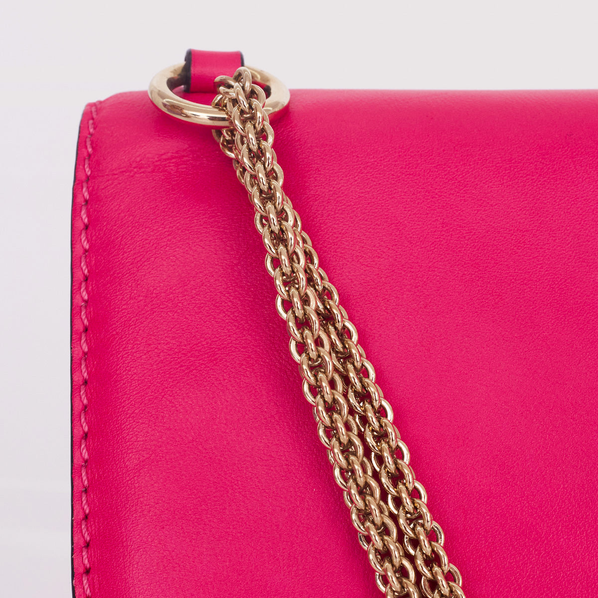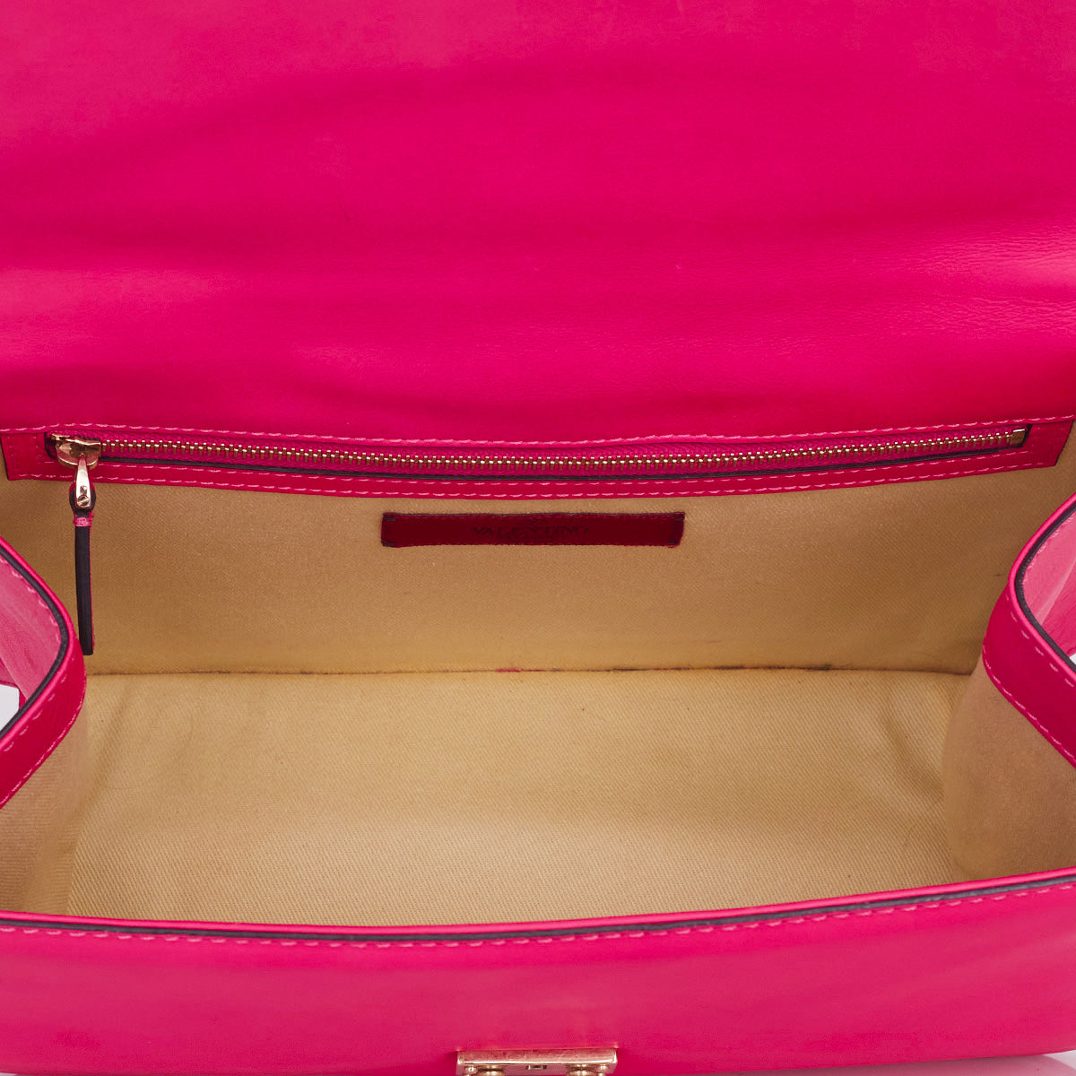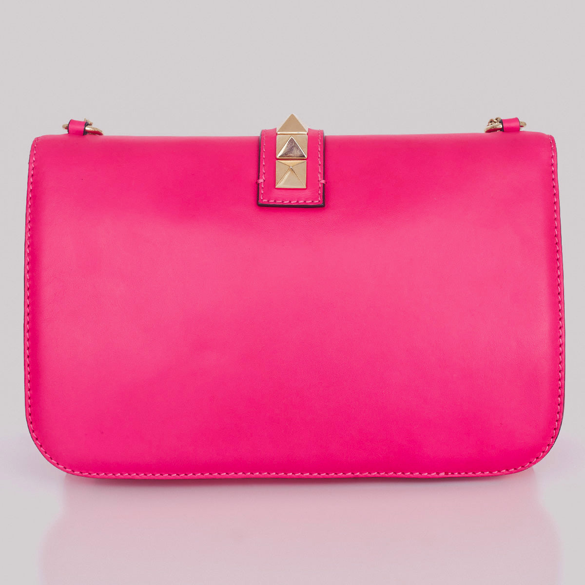Detalhes: Bolsa Valentino confeccionada em couro na cor rosa. Possui detalhe de studs dourados e alça em corrente ajustavel. Parte interna em tecido com compartimento único com bolsos. Fecho em encaixe.
