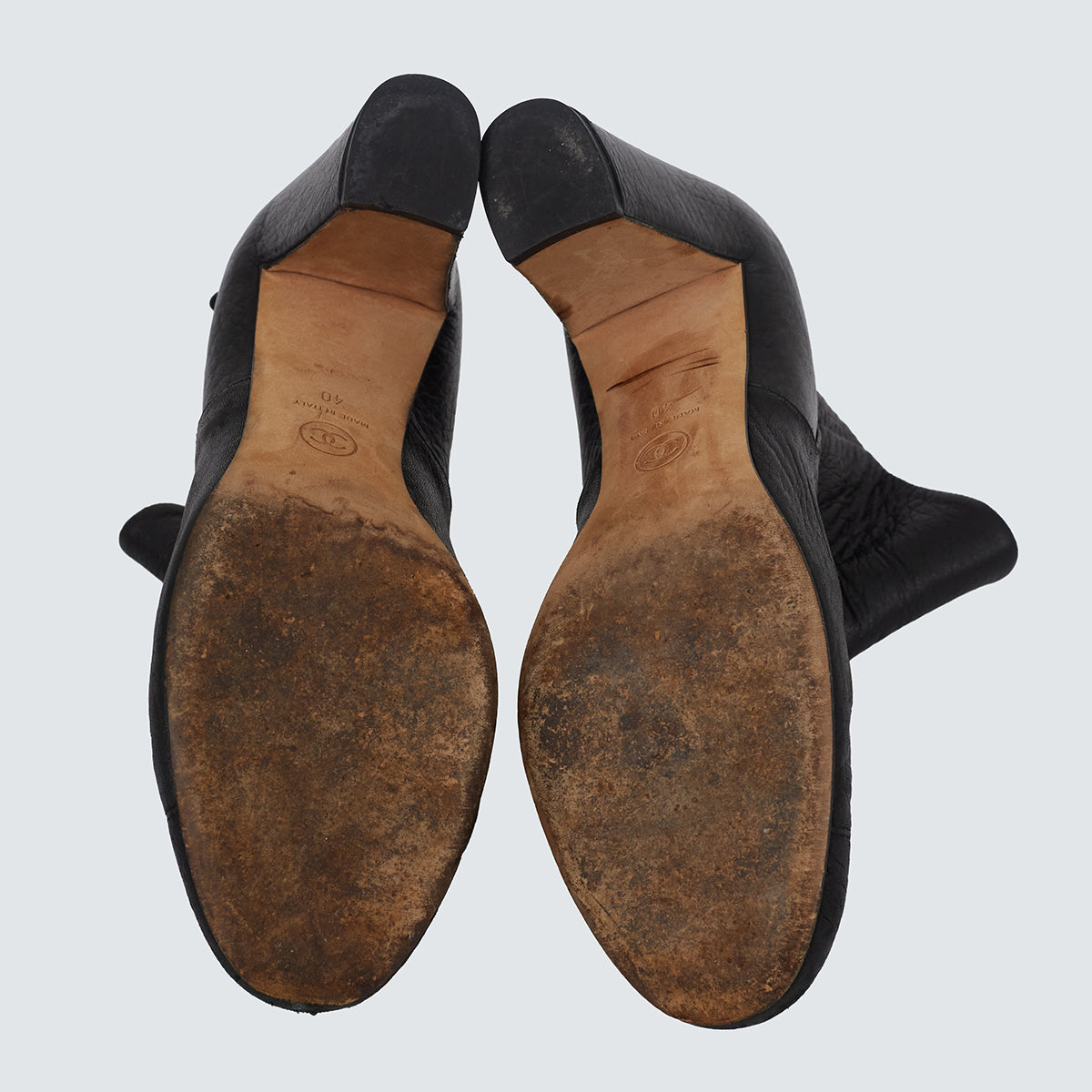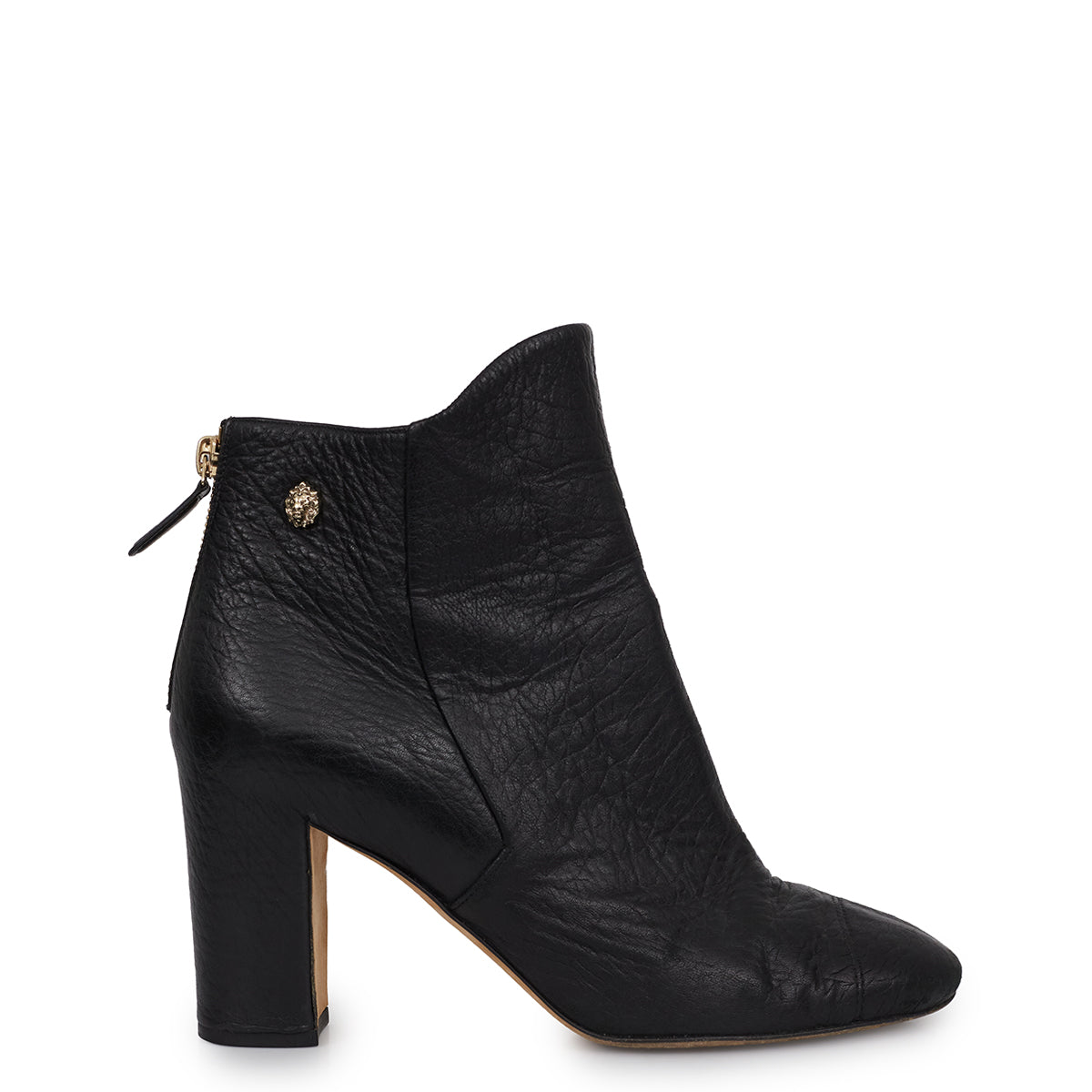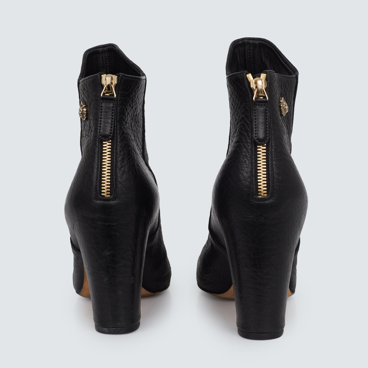 Detalhes: Bota de bico redondo, salta alto grosso blocado. Fecho em zíper traseiro. Possui detalhe em formato de leão e ferragens douradas. *acompanha dustbag da marca*