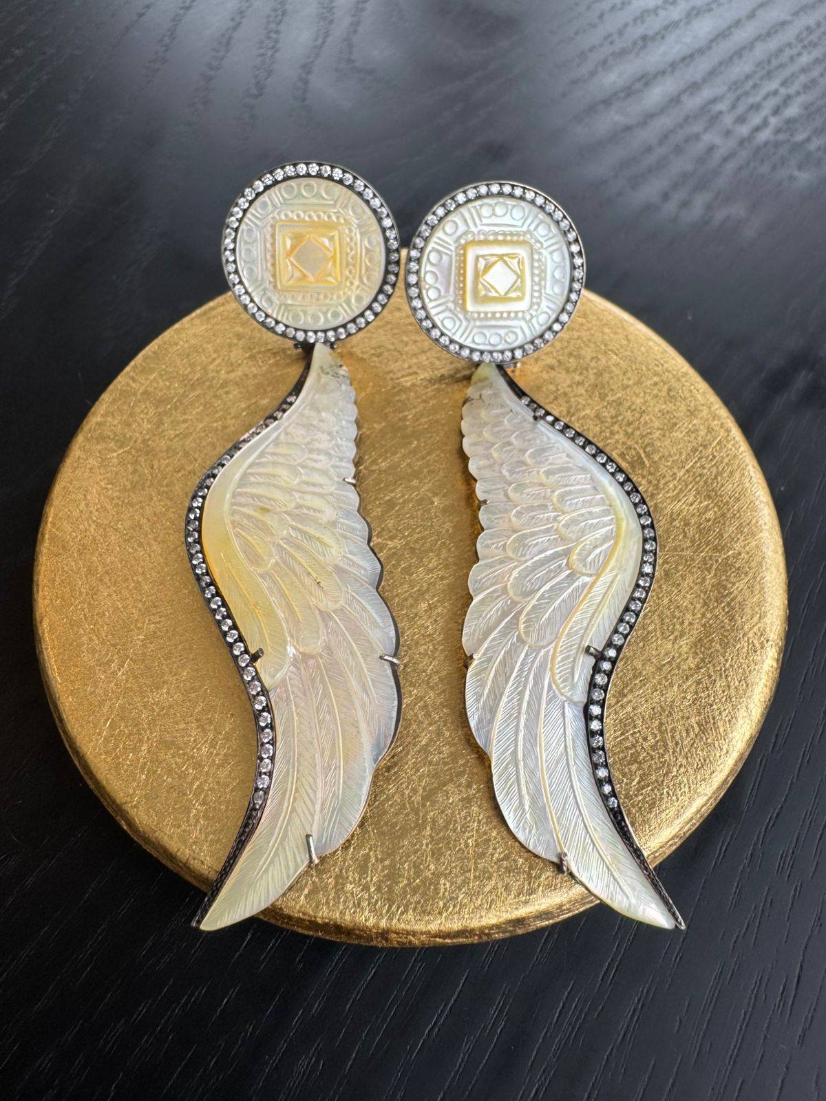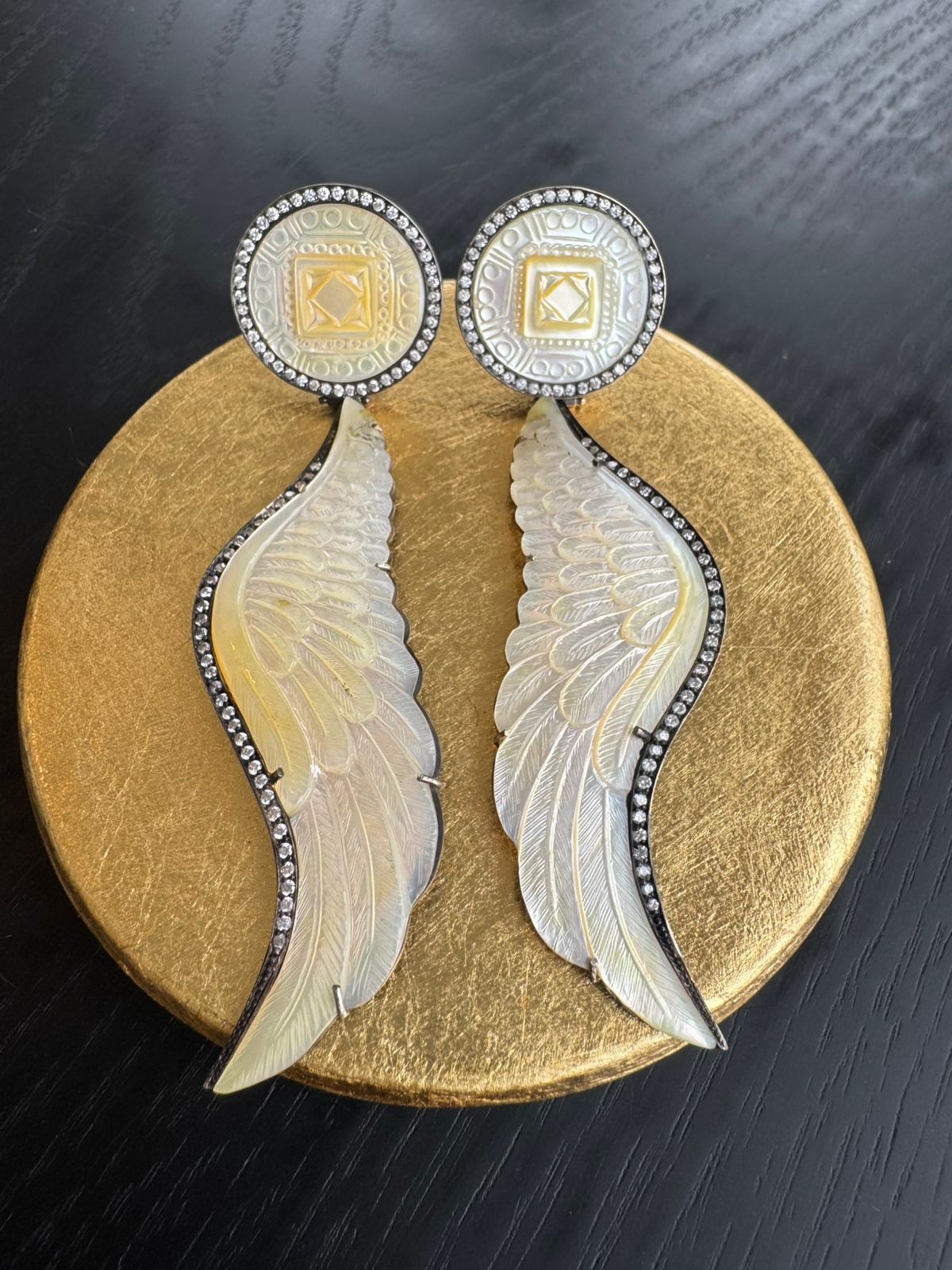 Detalhes: Brinco Raquel Correa confeccionado em ouro, brilhantes com banho de ródio negro e madrepérolas com lapidação especial.