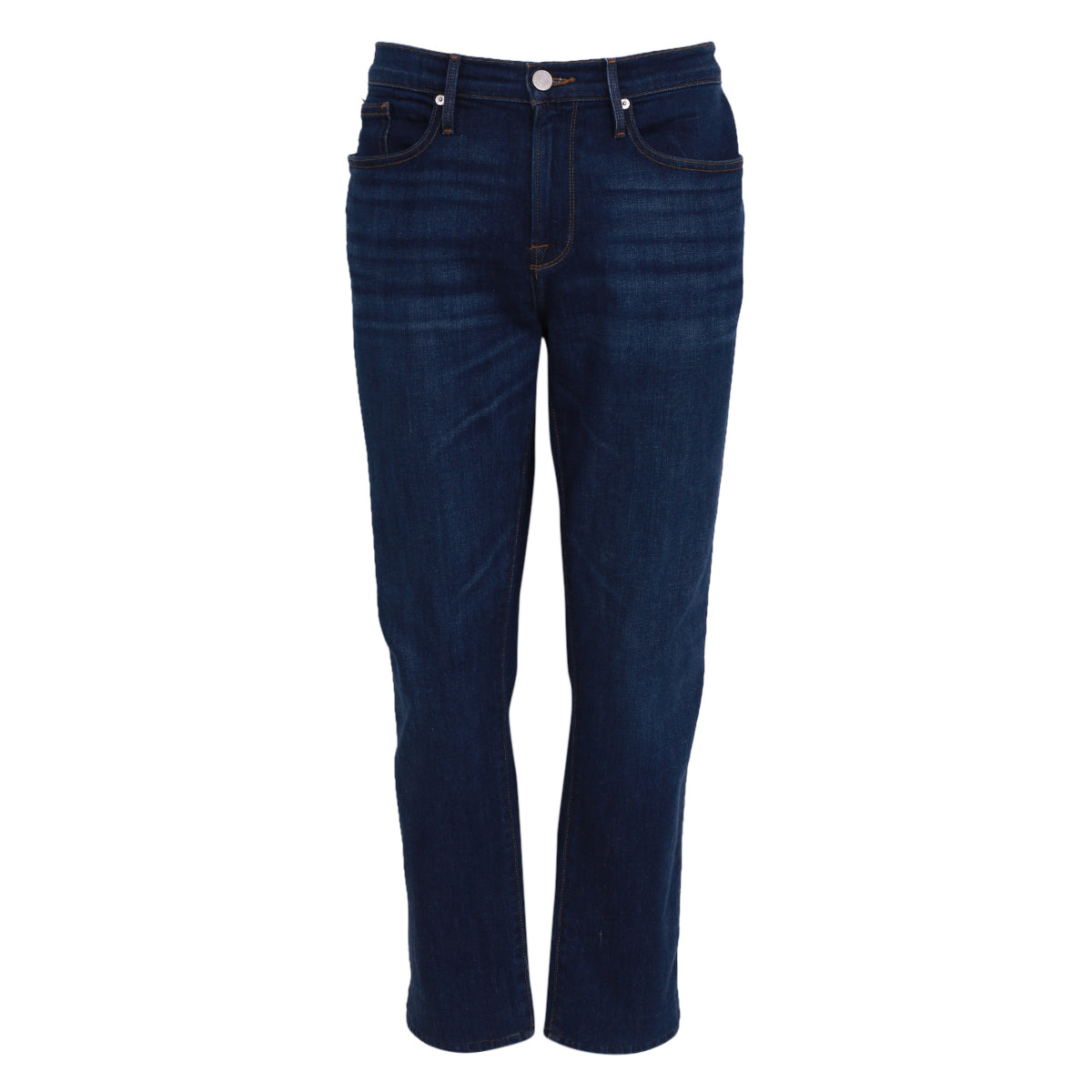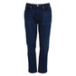 Detalhes: Calça jeans com lavagem escura e modelagem reta. Possui dois bolsos frontais e dois na parte de trás. Fechamento em ziper e botão.