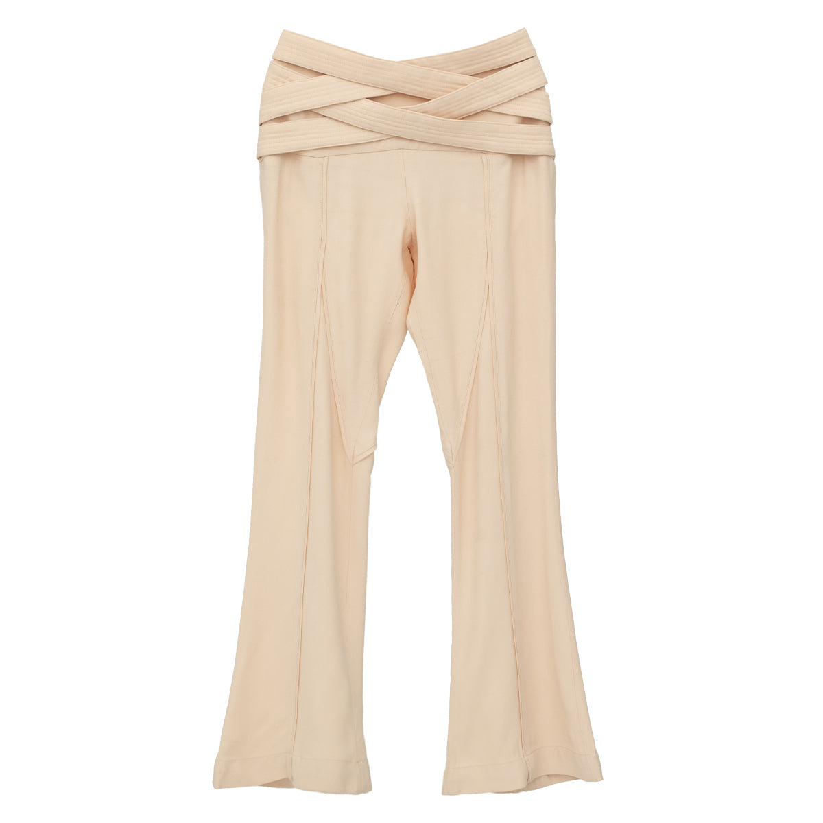 Detalhes: O modelo possui detalhes de tiras na parte frontal do cos, detalhes em costuras no comprimento, barra flare e fecho posterior por zíper.