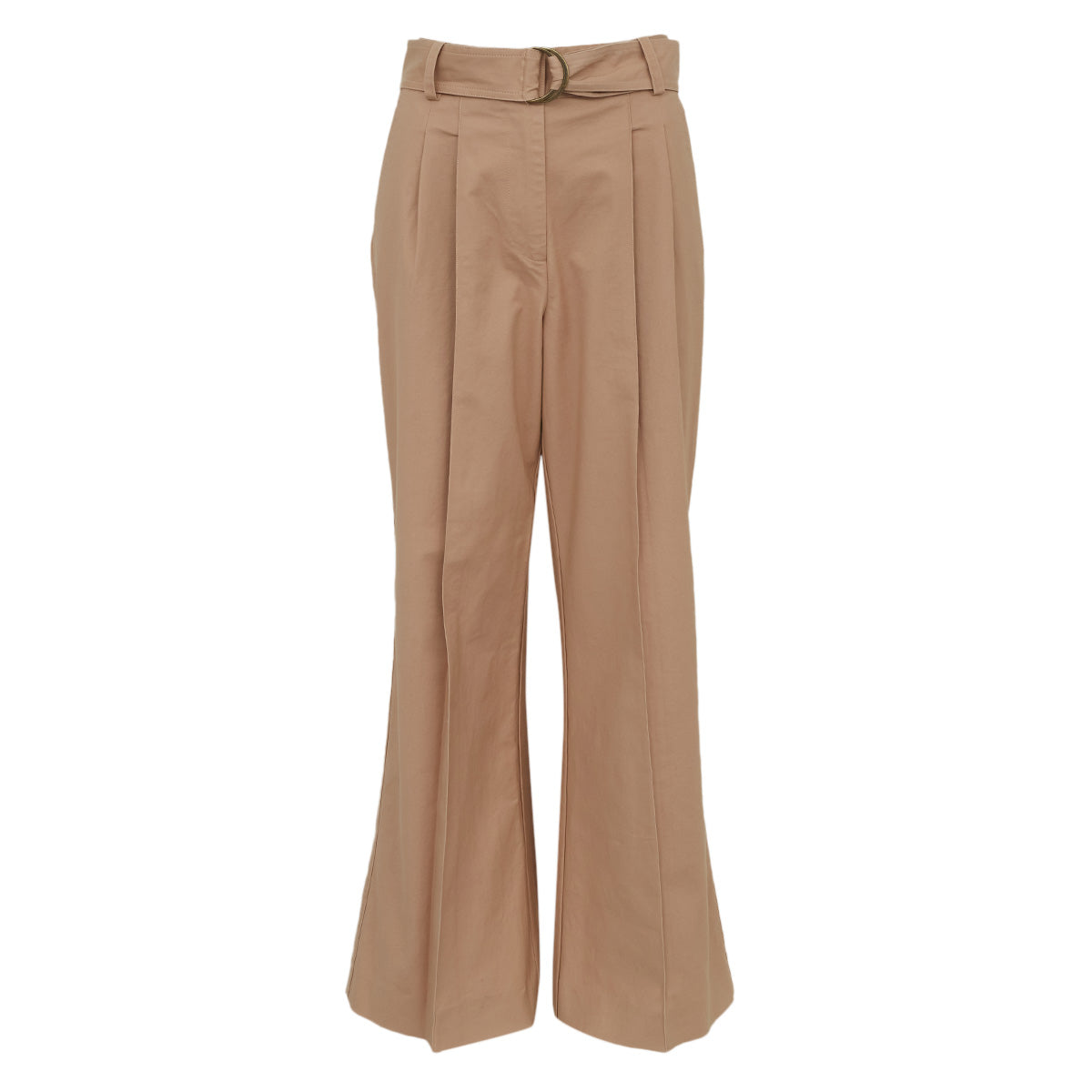 Detalhes: Calça Ulla Johnson confeccionada em tecido na cor nude. Possui modelagem flare e dois bolsos laterais frontais e dois traseiros fakes, detalhes de pregas e cinto na cintura. Fechamento por zíper e colchete.