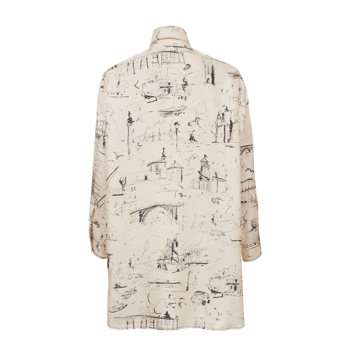 Detalhes: Camisa burberry estampada confeccionada em seda na cor off-white com detalhe em preto. Possui modelagem padrão, mangas longas, um bolso na parte frontal, gola colarinho , botão no punho. fechamento frontal por botões.
