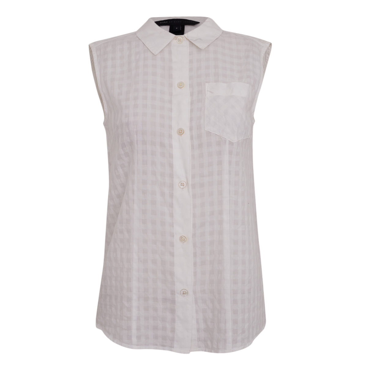 Detalhes: Camisa Marc Jacobs confeccionada em modal, alogdão e linho branca vichy sem mangas. Possui botões e um bolso na parte frontal da peça.