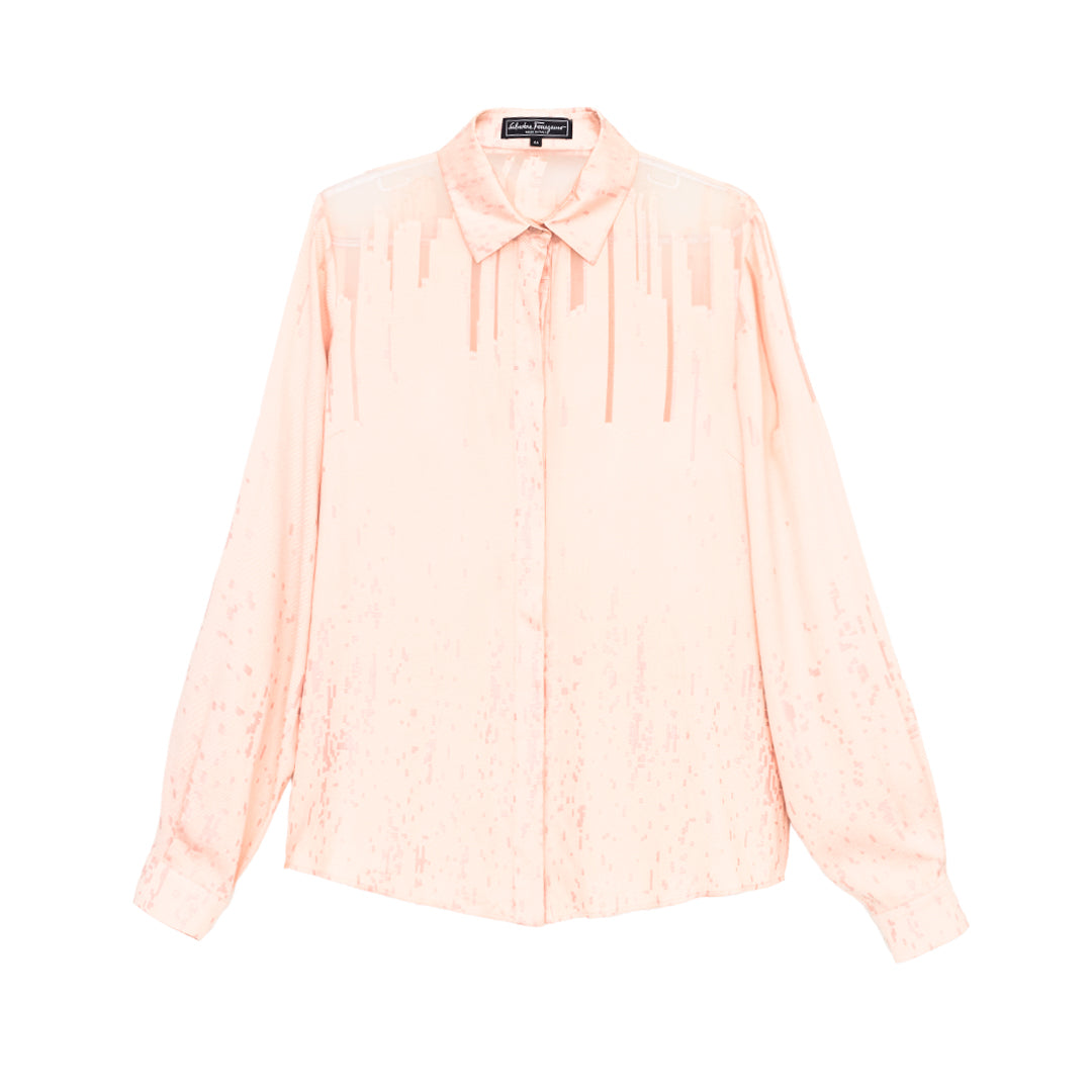 Detalhes: Camisa Salvatore Ferragamo Salmão com textura em tom diferente. Parte de cima da peça possui uma transparência.