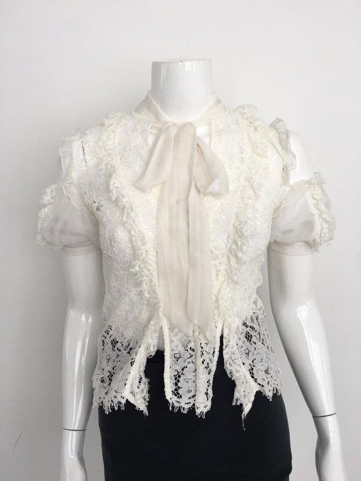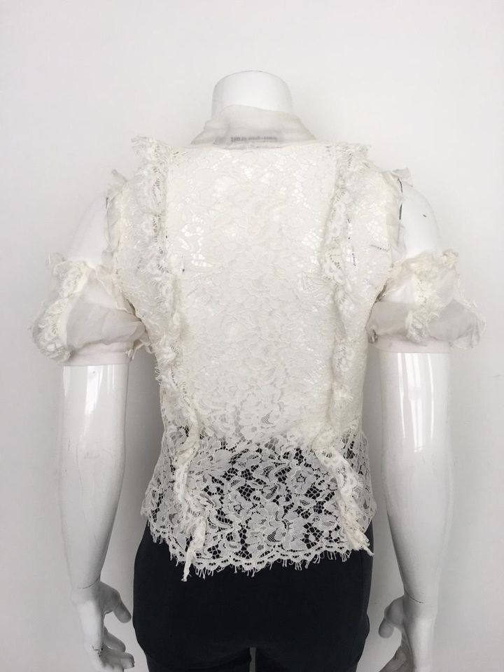 Detalhes: Camisa Self Portrait Renda Branca Tam. 6. Modelo com corte V e mangas bufantes