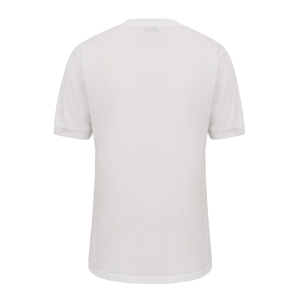 Detalhes: Modelo confeccionado em tecido na cor branca. Possui gola arredondada, mangas curtas e detalhes de escritos na parte frontal e patch da letra S.