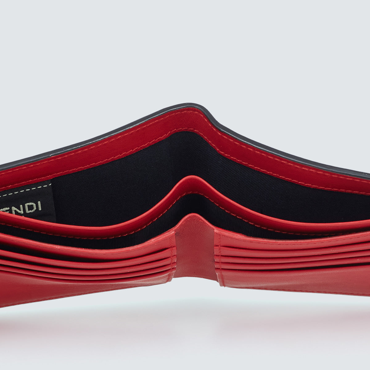Detalhes: Carteira Fendi confeccionada em couro, possui 9 divisórias para cartões e duas para para cédulas. Parte interna em vermelho