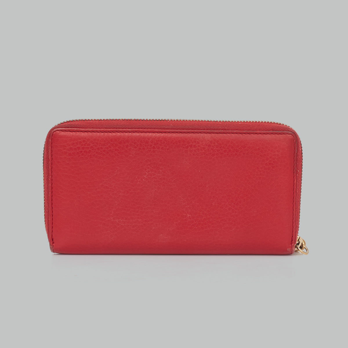 Detalhes: Carteira Gucci confeccionada em couro na cor vermelha. Possui formato retangular, com três compartimentos internos, um bolso com zíper e duas divisórias para cartões. Fechamento em zíper com pingente. *Acompanha dustbag da marca*