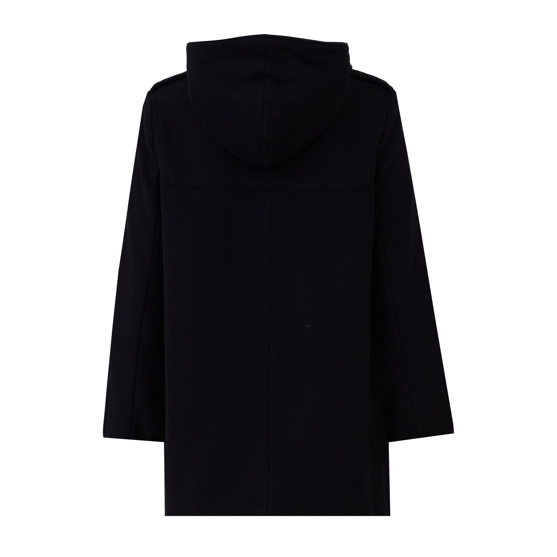 Detalhes: Modelo confeccionado em lã na cor preta. Possui touca e mangas compridas, dois bolsos frontais, fecho por zíper e botões.