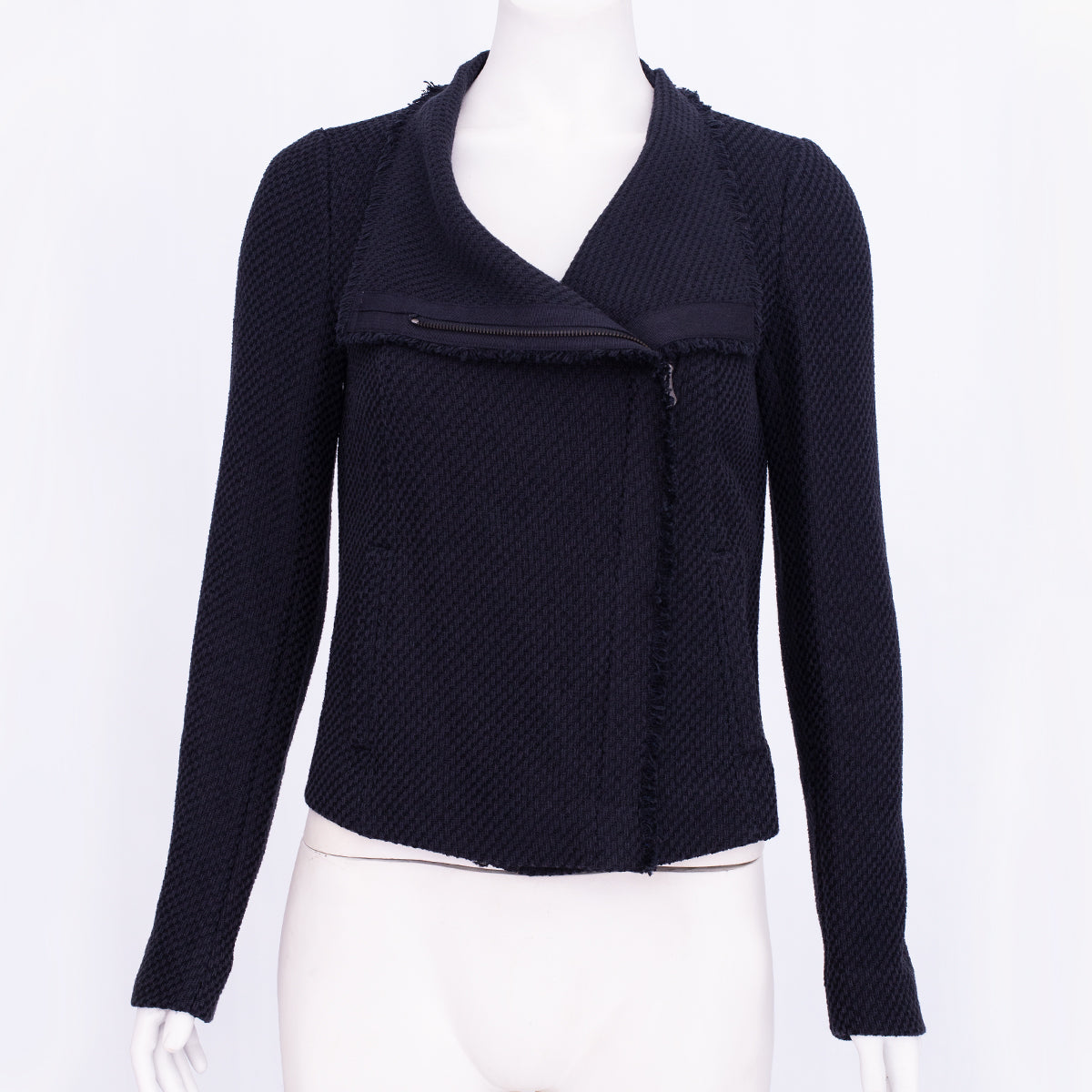 Detalhe: Casaco Vince Azul Marinho Tam. S. Modelo casual, com abertura de ziper na coloração chumbo.