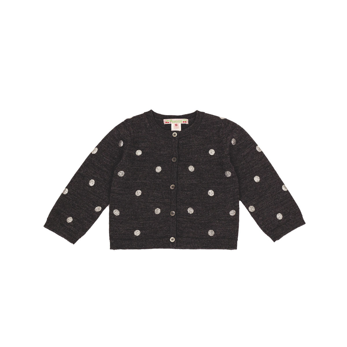 Detalhe: Casaquinho Bonpoint Cinza e Bolinhas Tam. 18 meses