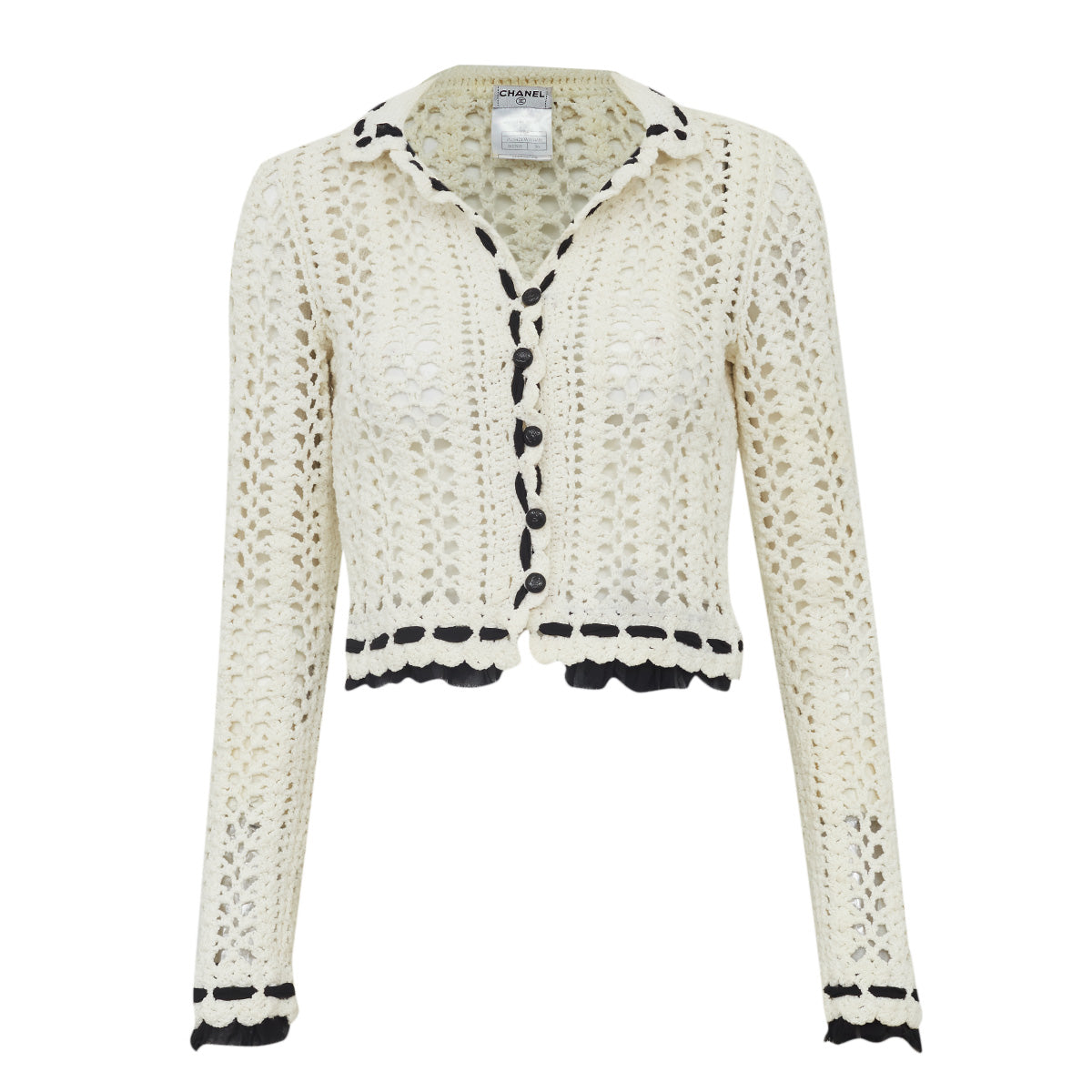 Casaquinho Chanel Branco e Preto Crochet Tam. 34 Br
