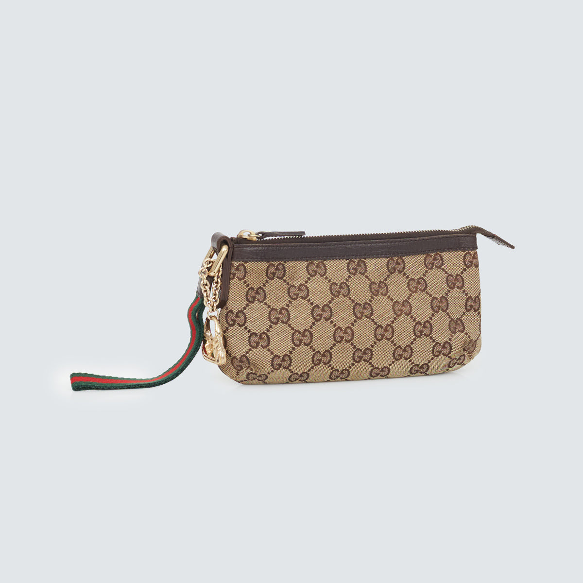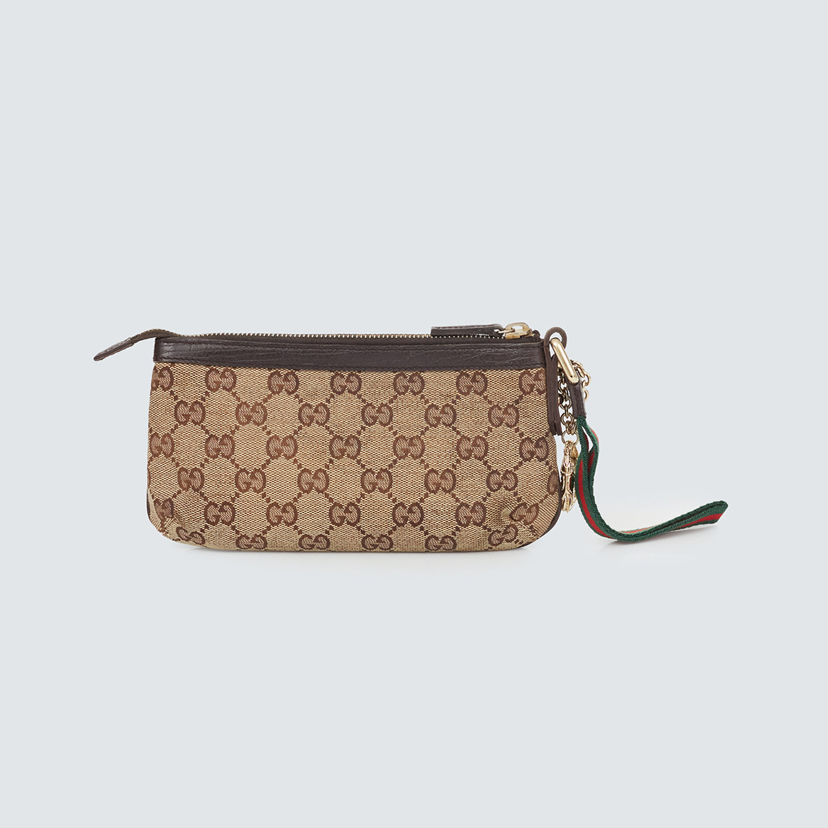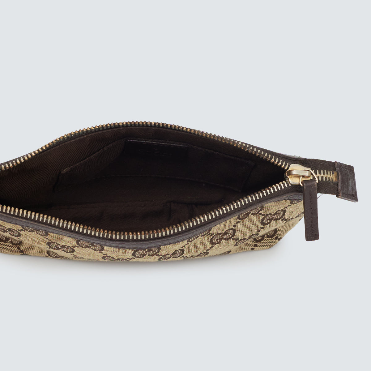 Detalhes: Clutch / Carteira Gucci confeccionada em tecido com monograma, e acabamentos em couro. Possui alça pequena de mão, compartimento interno amplo, com divisórias para cartões. Fechamento em zíper.
