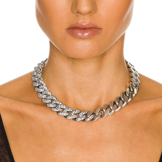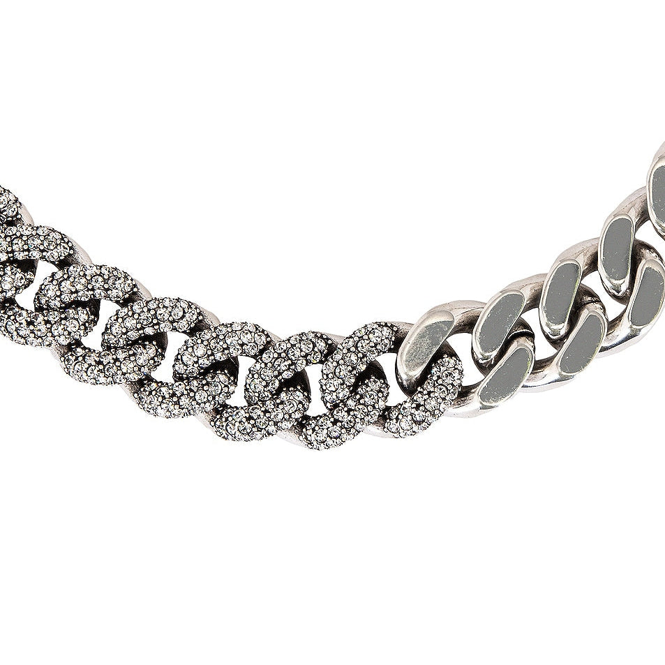 Detalhes: Colar Saint Laurent com design maximalista. A peça apresenta desing de corrente com metade em strass e a outra metade fosca.