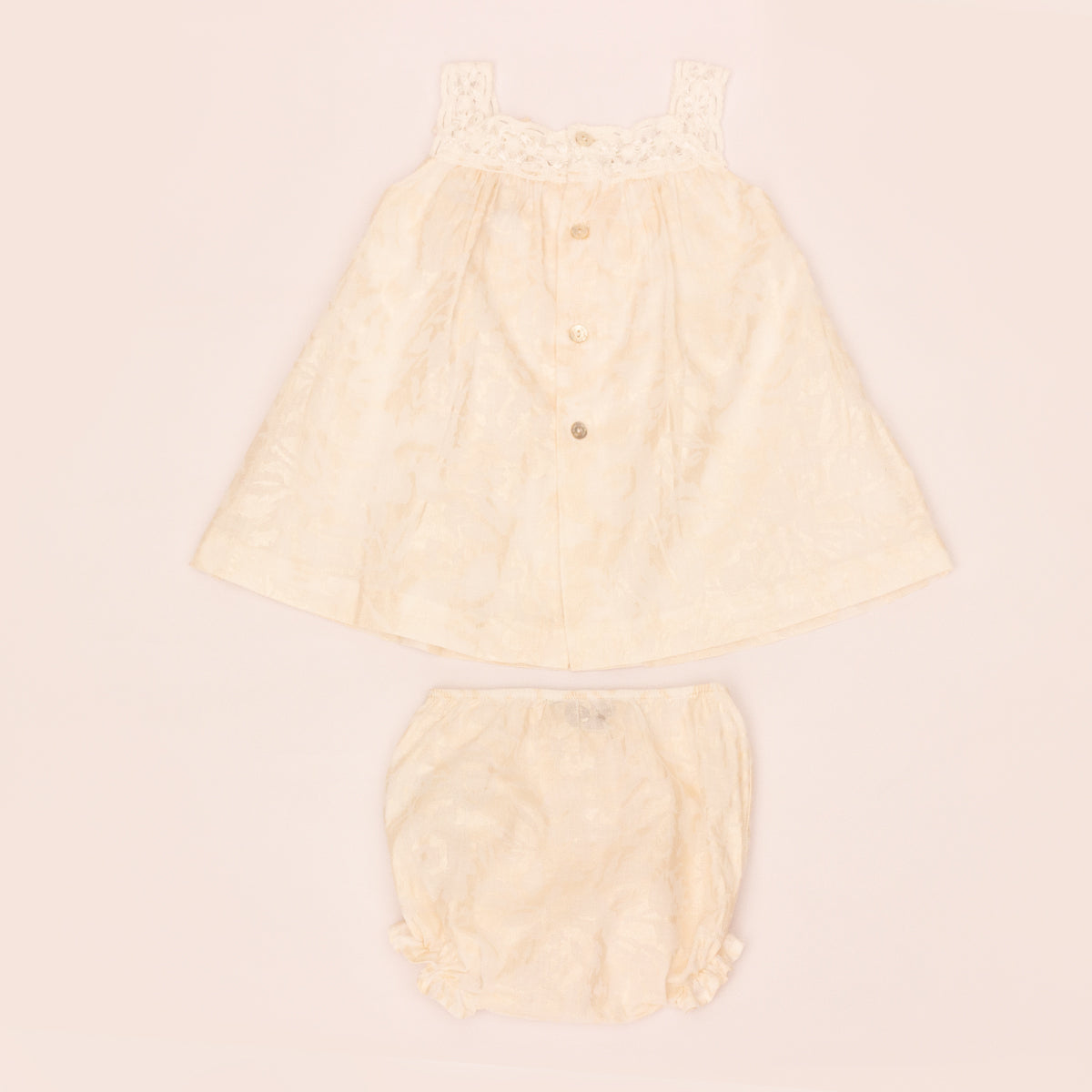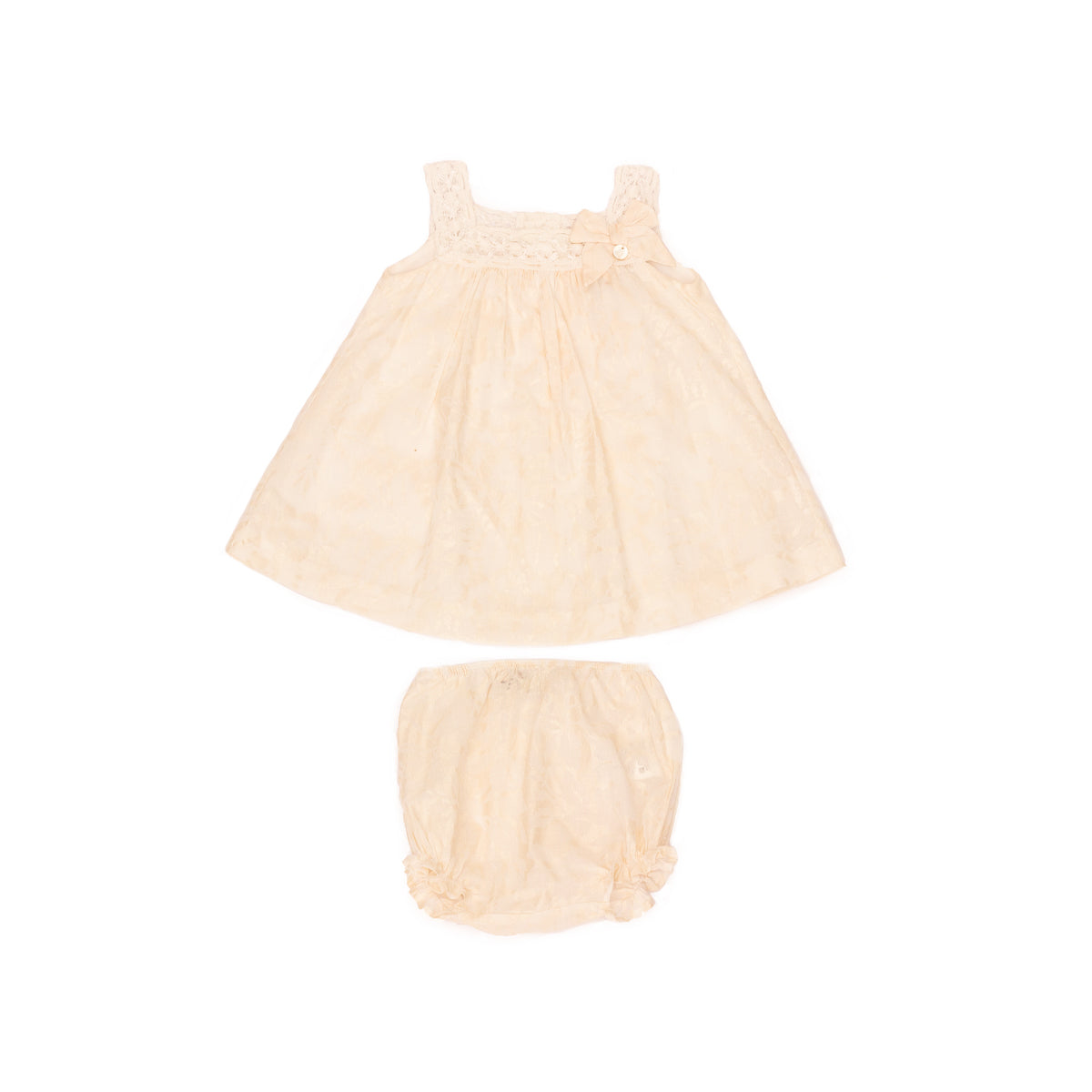 Conjuntinho Vestido Pili Carrera Bege e Perolado Tam. 1-3 meses