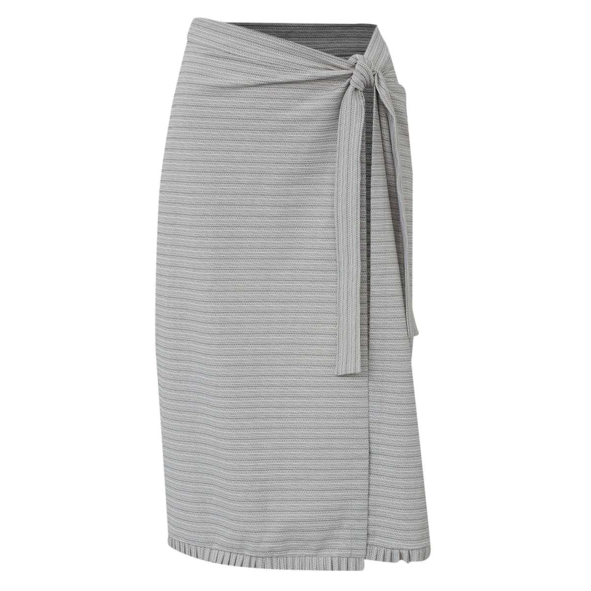 Detalhes: Body confeccionado em tecido na cor branca com listras verde e cinza, possui alças grossas, decote V com mini franzido, decote longo nas costas com fecho em colchete. Saia confeccionada em tecido na cor branca com listras verde e cinza, possui comprimento midi, babado na barra, fenda lateral, cinto para amarração no cós e fechamento por amarração.