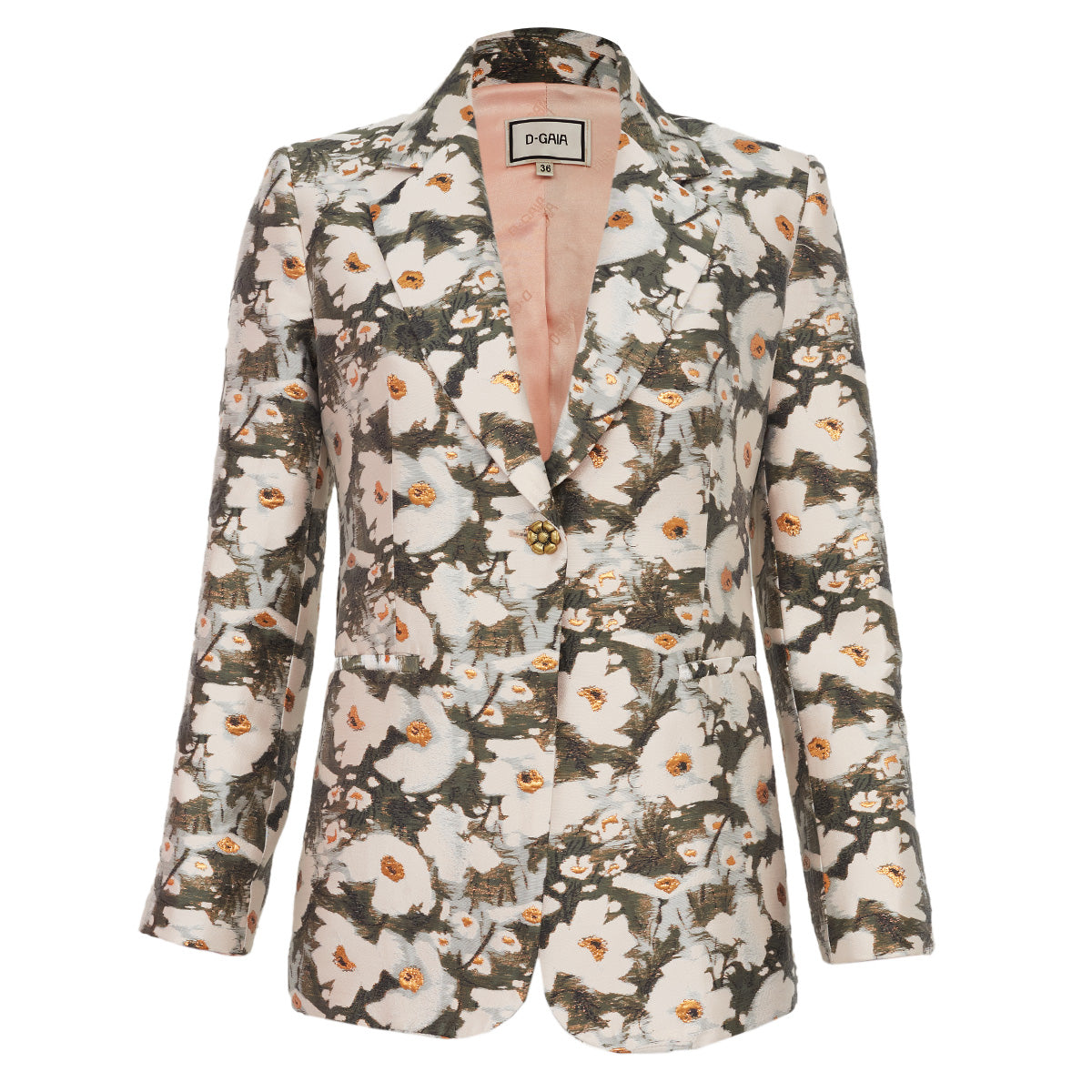 Detalhes: Conjunto D-Gaia confeccionado em poliéster. O conjunto conta com: blazer estampando com dois bolsos fakes frontais. Calça cintura alta com bolso faca.
