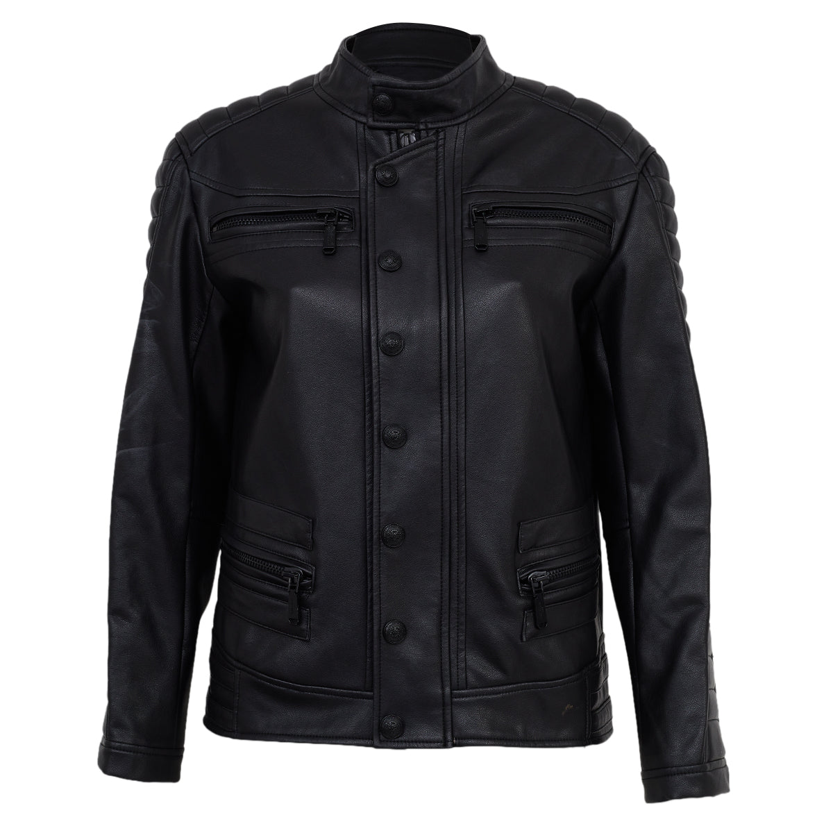 Detalhes: Jaquea Balmain confeccionado em couro na cor preta. Possui mangas compridas, fechamento frontal por ziper e auxilio de botões. Possui bolsos com ziper na parte frontal e interna.