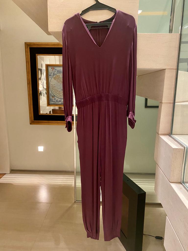 Detalhes: Macacão Talie Nk Vinho Tam. 36 Possui modelagem reta, drapeados no barrado, dois bolsos laterais não funcionais, mangas longas com elástico nos punhos, decote V e fecho posterior em zíper invisível
