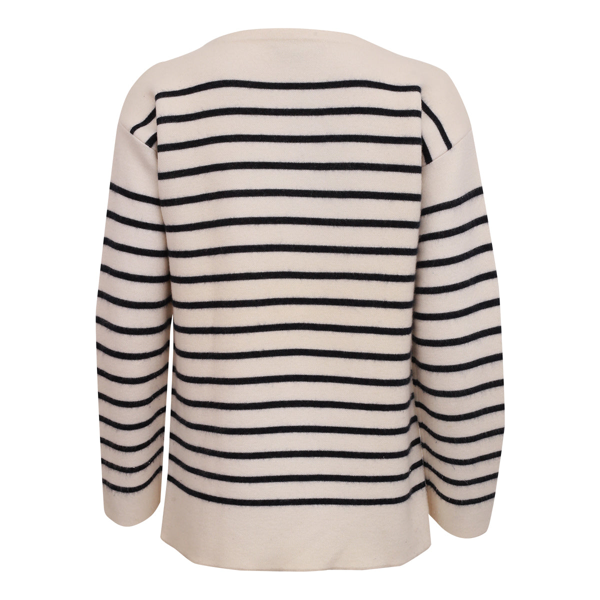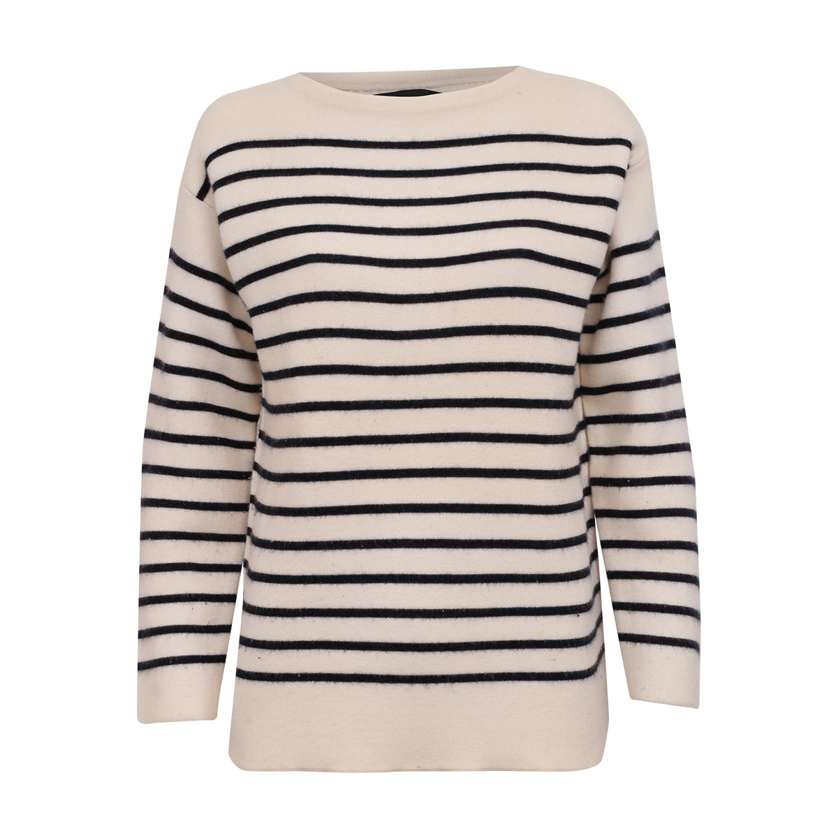 Detalhes: Malha Burberry confeccionado em tecido na cor creme com listra azul marinho. Modelo possui mangas longas, decote redondo e barra reta.