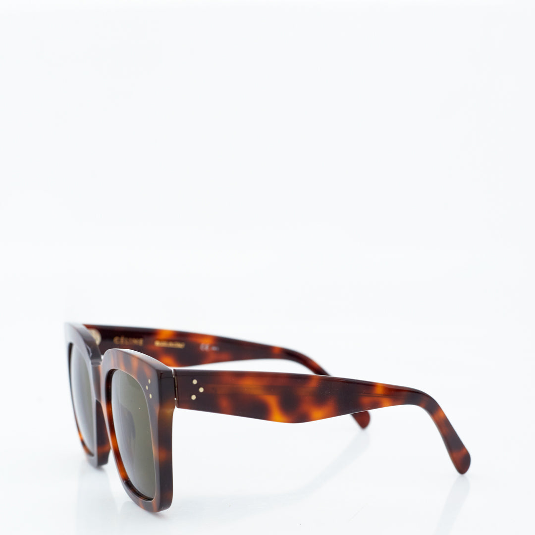 Detalhes: Óculos mais arredondado com as hastes mais quadradas, na cor marrom.