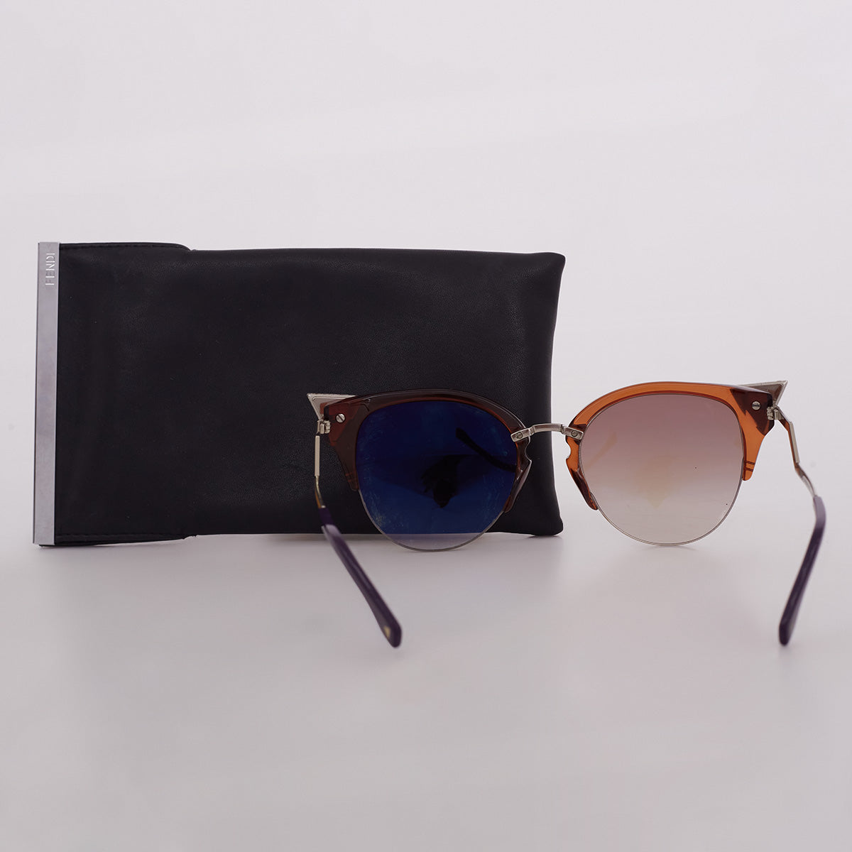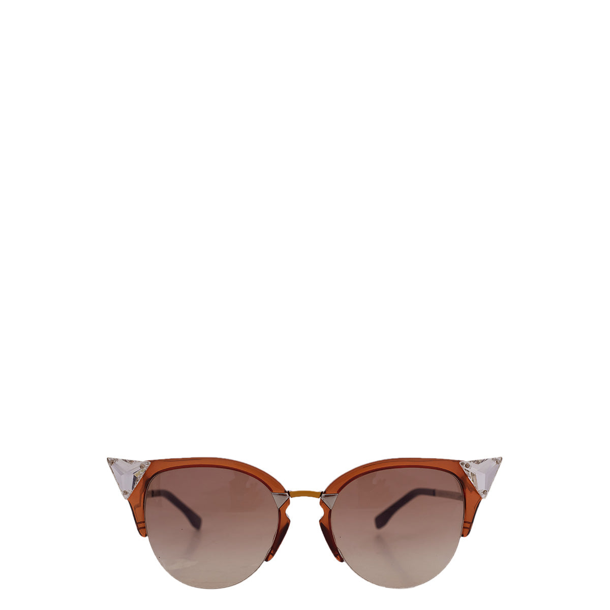 Detalhes: Óculos Fendi com armação marrom com detalhe de pedra nos cantos. Possui hastes finas amarelas e roxas. *acompanha estojo da marca*