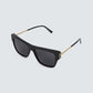 Detalhes: Óculos confeccionado em acetato na cor preta, com hastes metálicas douradas. O formato quadrado confere ao modelo um visual moderno e marcante. *Acompanha estojo da marca*