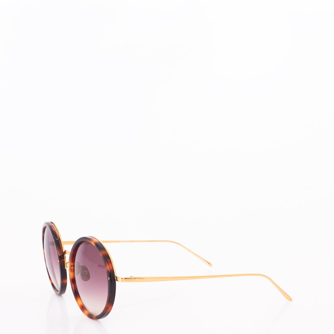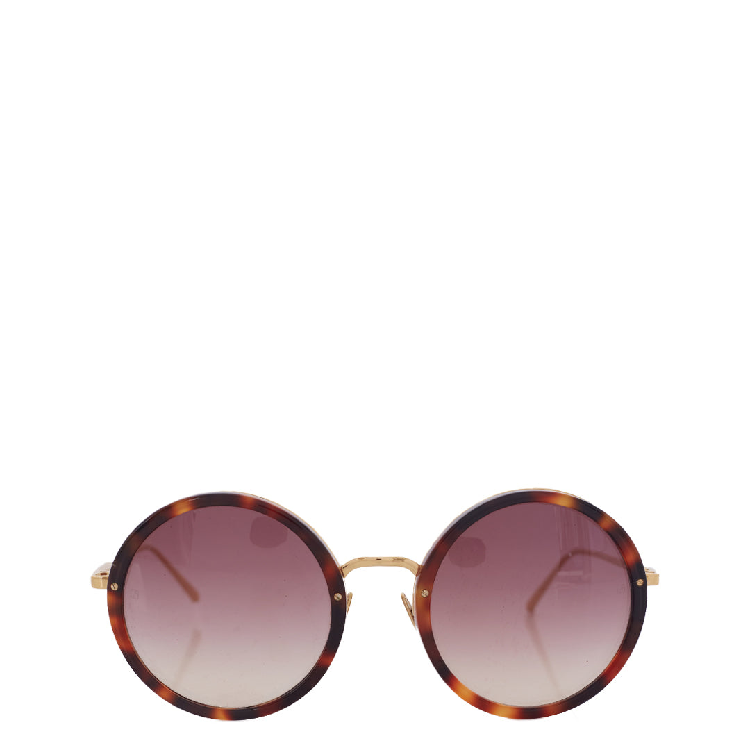 Detalhes: Óculos Linda Farrow gallery com lente redonda na cor marrom e armação em animal print. Possui haste dourada e acompanha estojo original da marca.