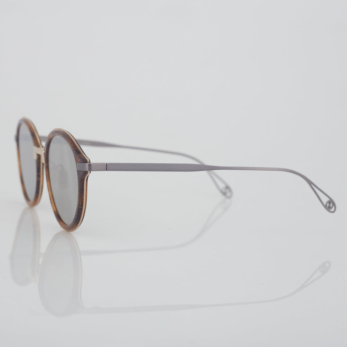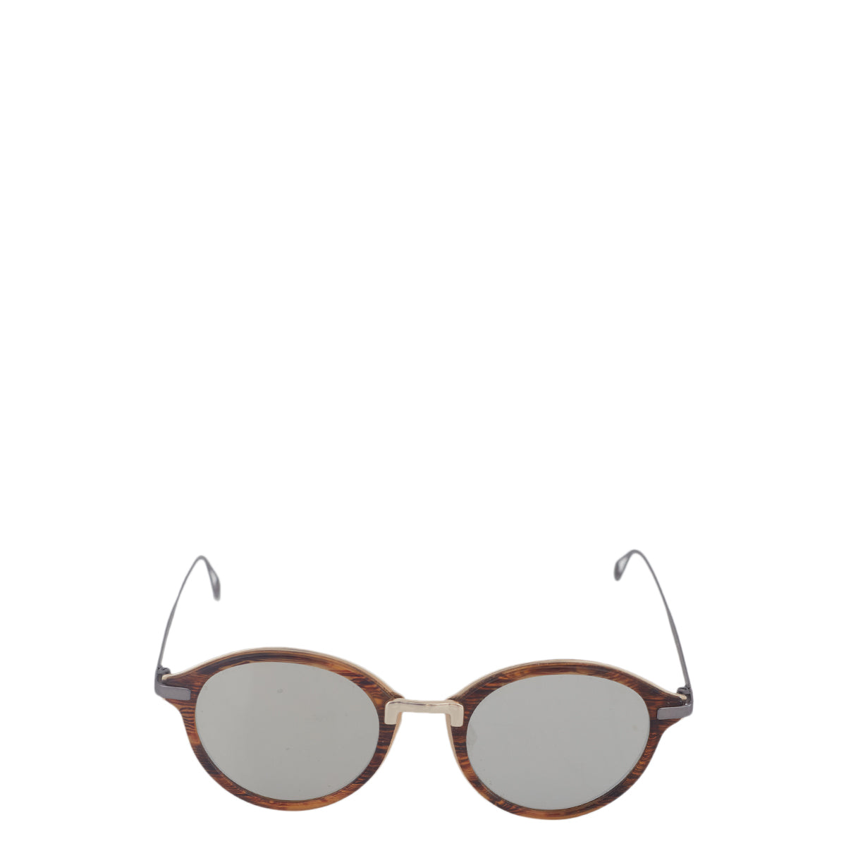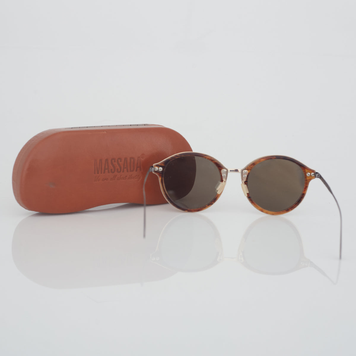 Detalhes: Confeccionado em armação redonda com estampa em tons de castanho claro e marrom, conta com ferragens prateadas, lente espelhada e haste fina. *Acompanha estojo da marca*