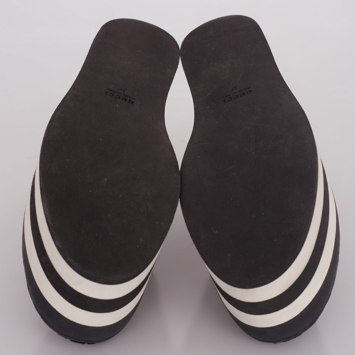 Detalhes: Oxford Gucci plataforma. Modelo possui ponta arredondada, salto plataforma preto e branco, e couro trabalhado em renda.