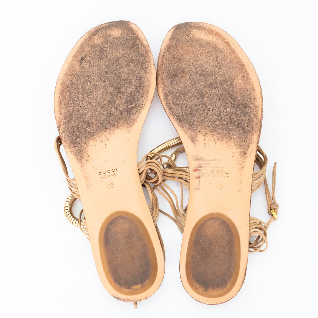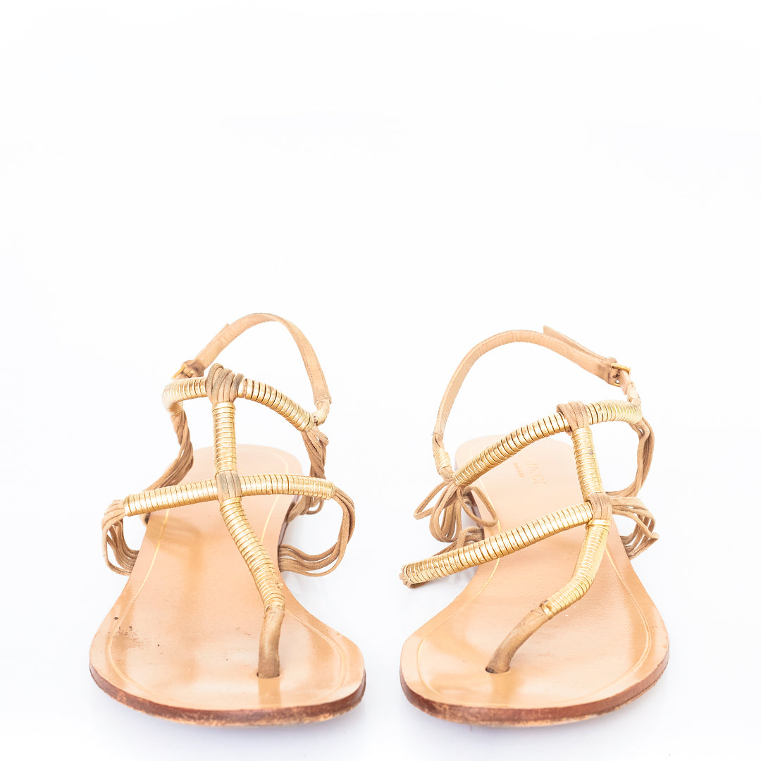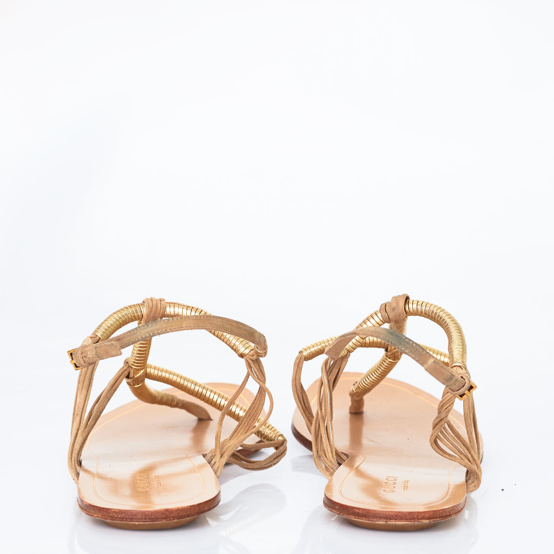 Detalhes: Rasteirinha Gucci couro dourado Tam. 40. Modelo com franjas. Modelo com tiras.