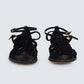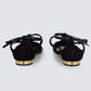 Detalhes: Modelo confeccionado em camurça. Possui tiras finas frontais trançadas, salto baixo e detalhe dourado no salto como logotipo da marca. Fecho por fivela dourada no calcanhar.