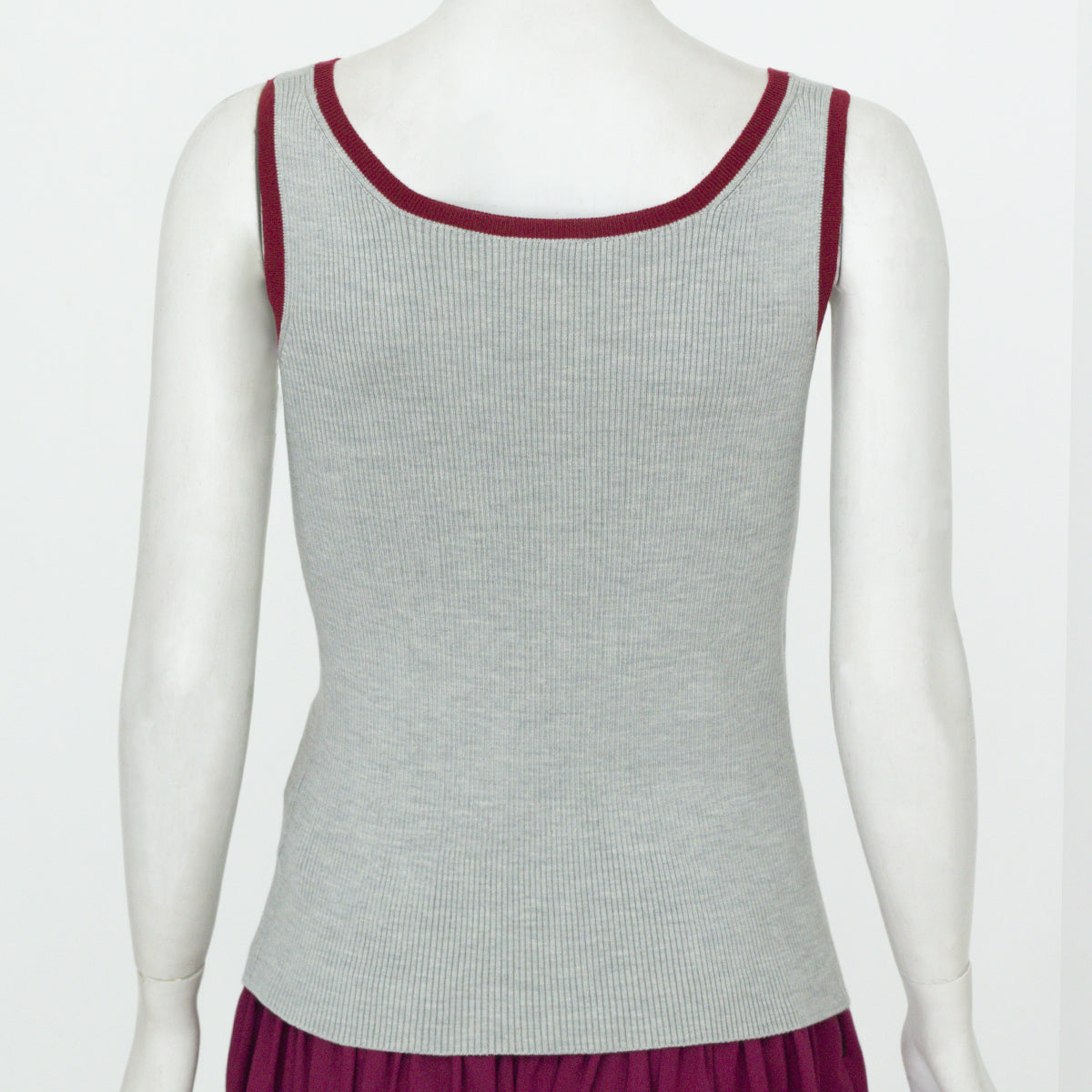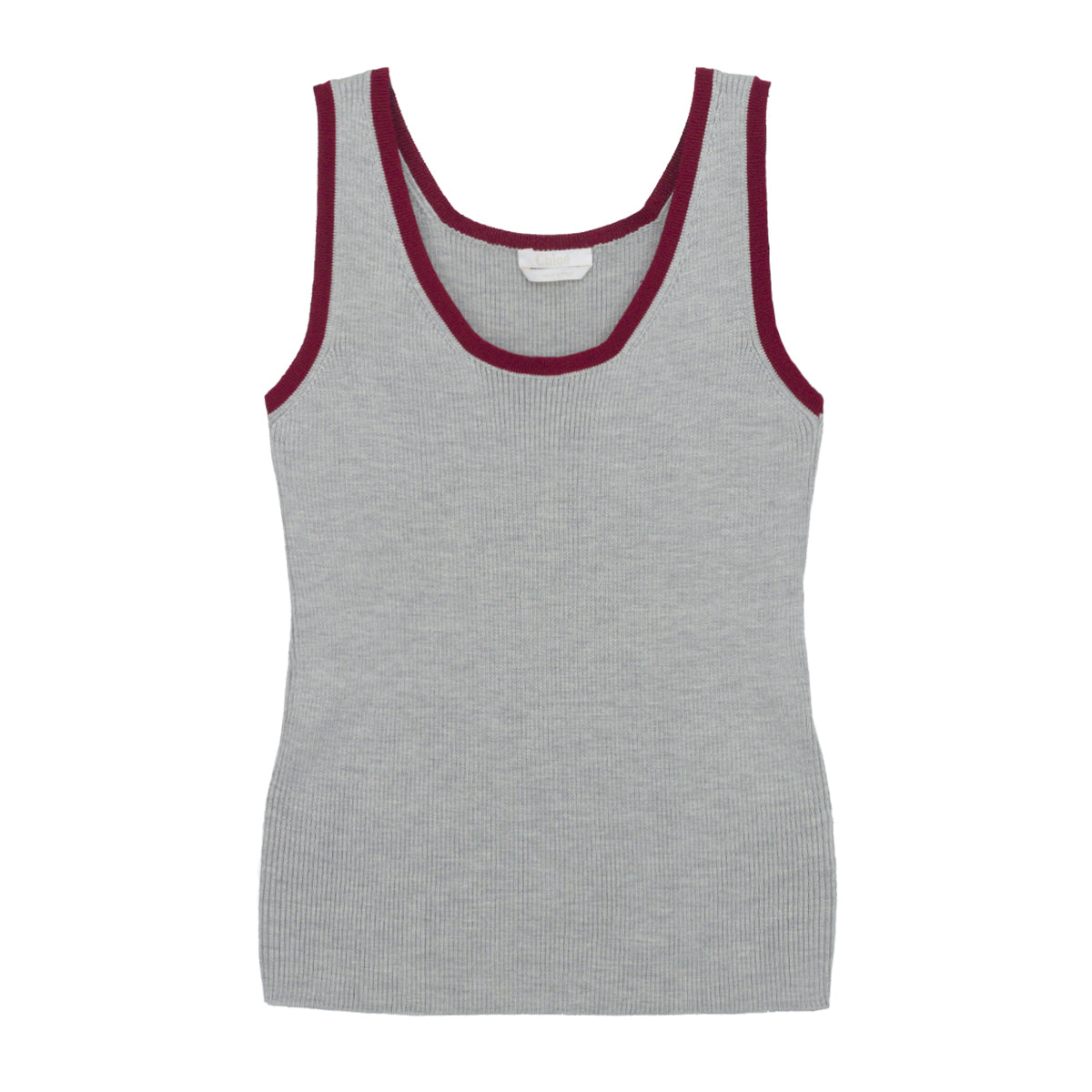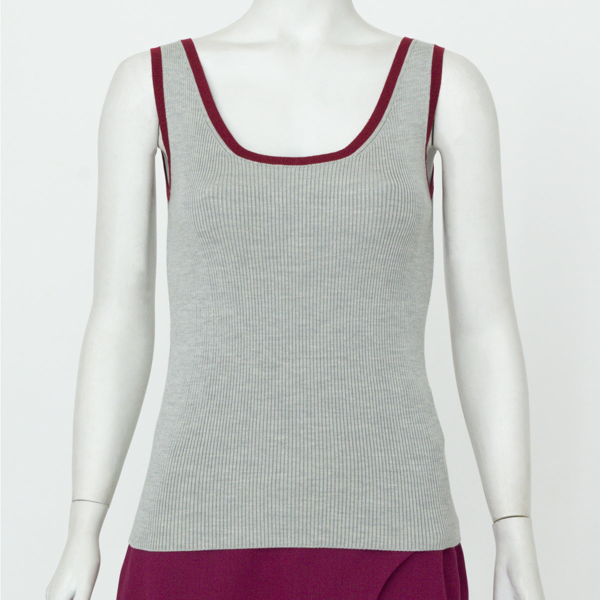 Detalhes: Regata com detalhes em vinho na gola e barra .