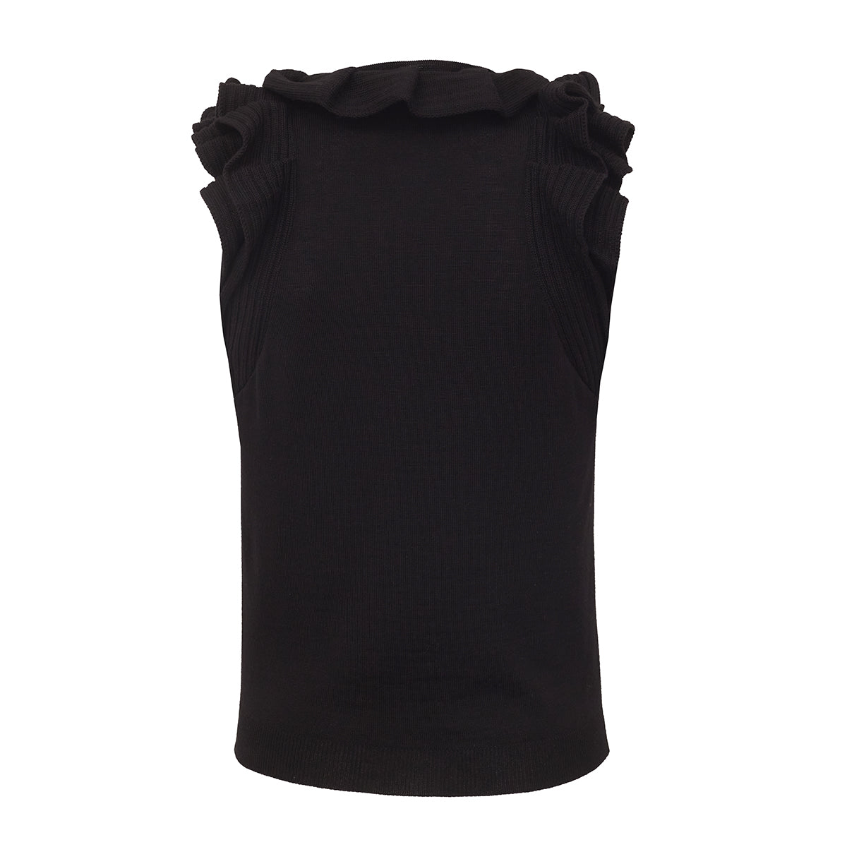 Detalhes: Regata Red Valentino na cor preta . Modelo possui babados no ombro, decote V e barra com punho.
