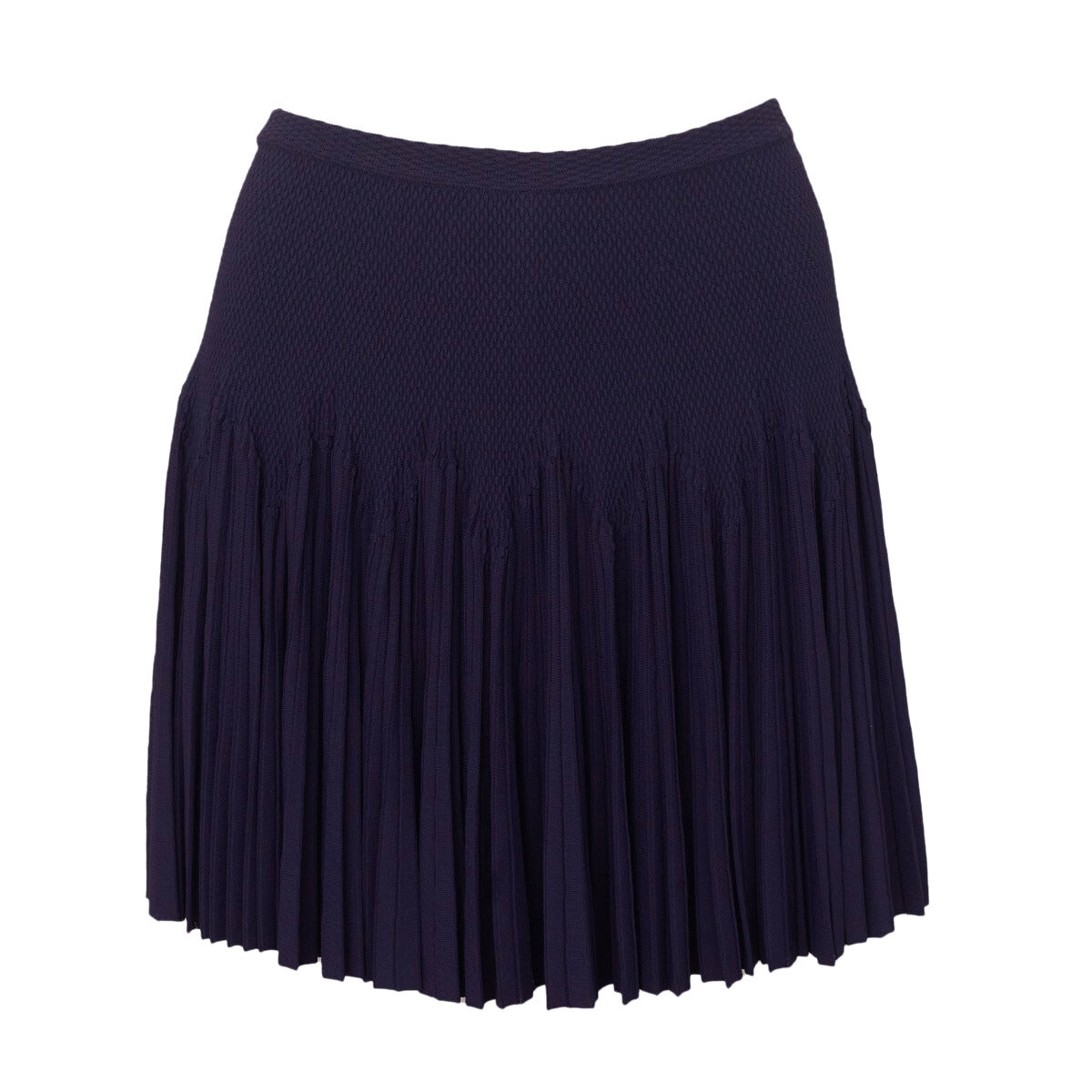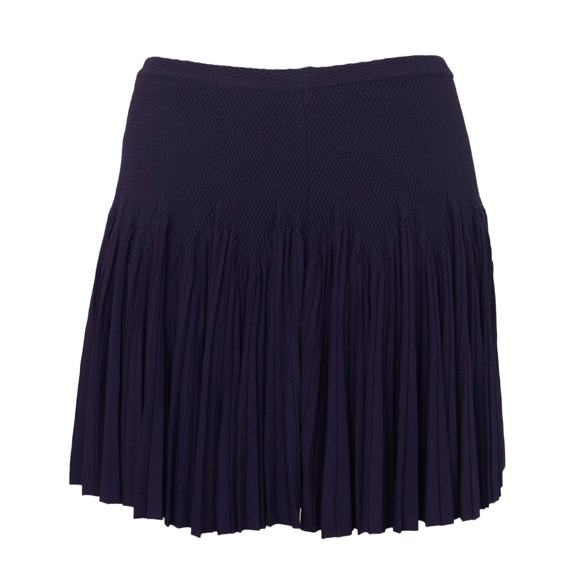 Detalhes: Saia Alaia confeccionada em azul marinho. Possui comprimento curto, detalhe em babados franzidos, e cós pequeno.