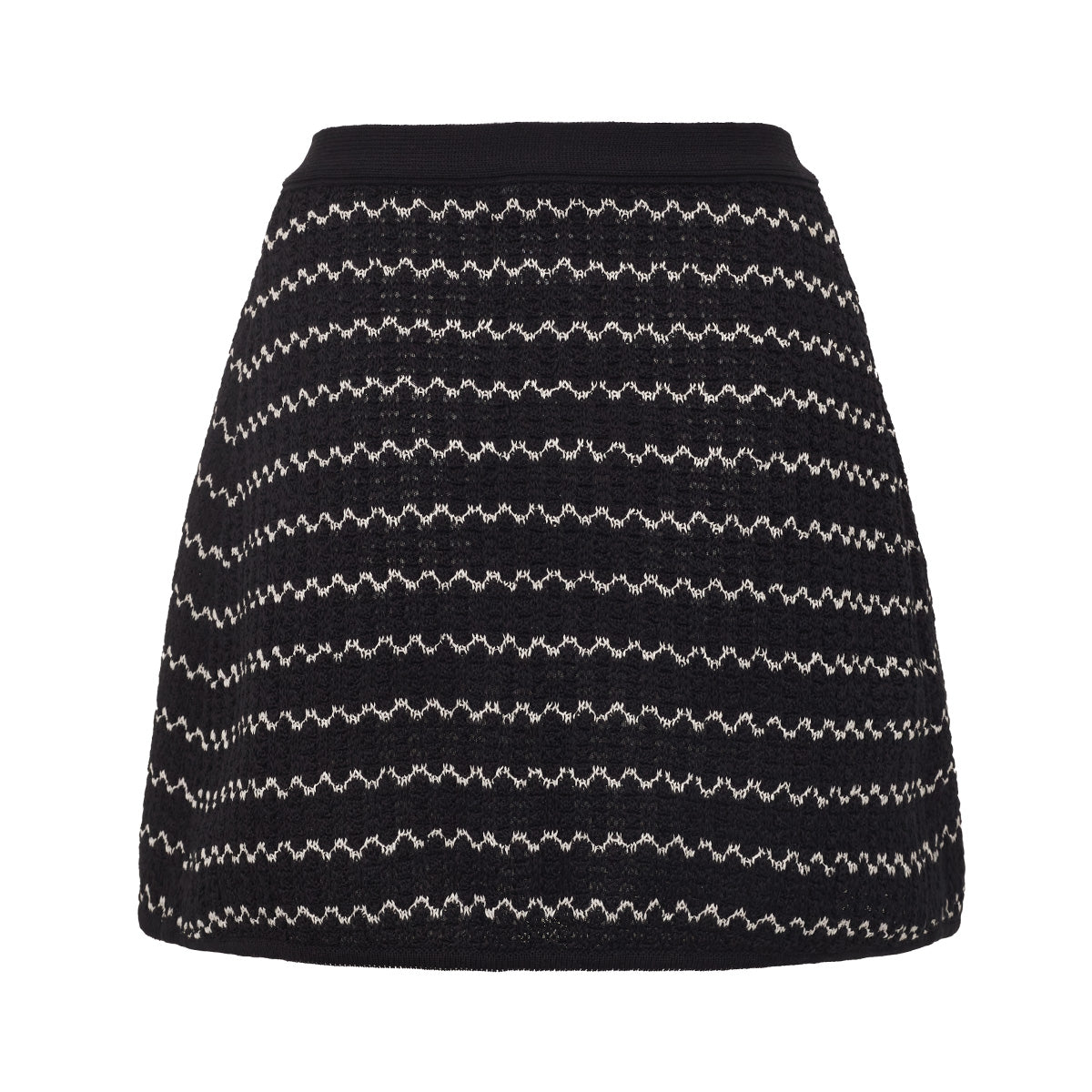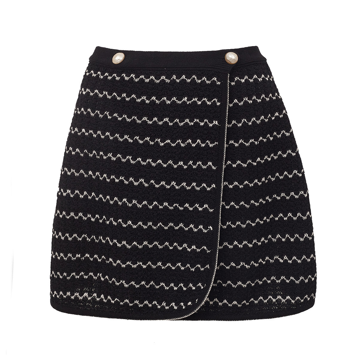 Detalhes: Saia Chanel confeccionada em algodão na cor preta e branco. Possui modelagem curta, dois botões parolado, abertura lateral , tecido semi transparente.