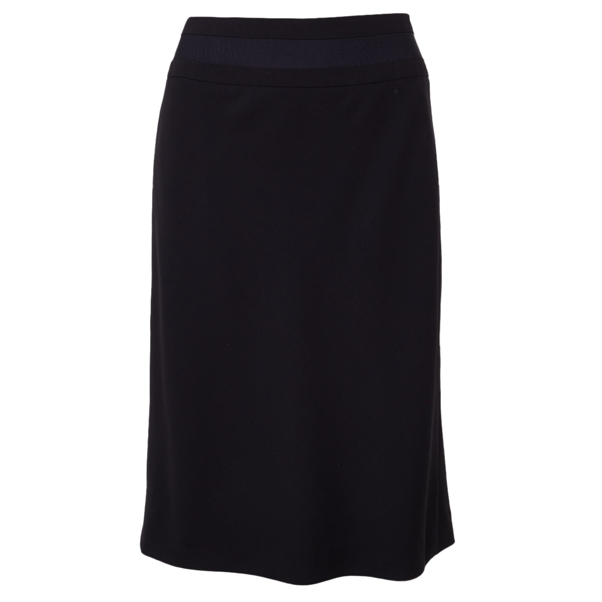Detalhes: Saia Giorgio Armani confeccionada em tecido viscose leve e fluido na cor preta e detalhe na cintura azul. Modelo de cintura alta / média, possui um segundo forro forro na parte interior e fechamento por zíper.