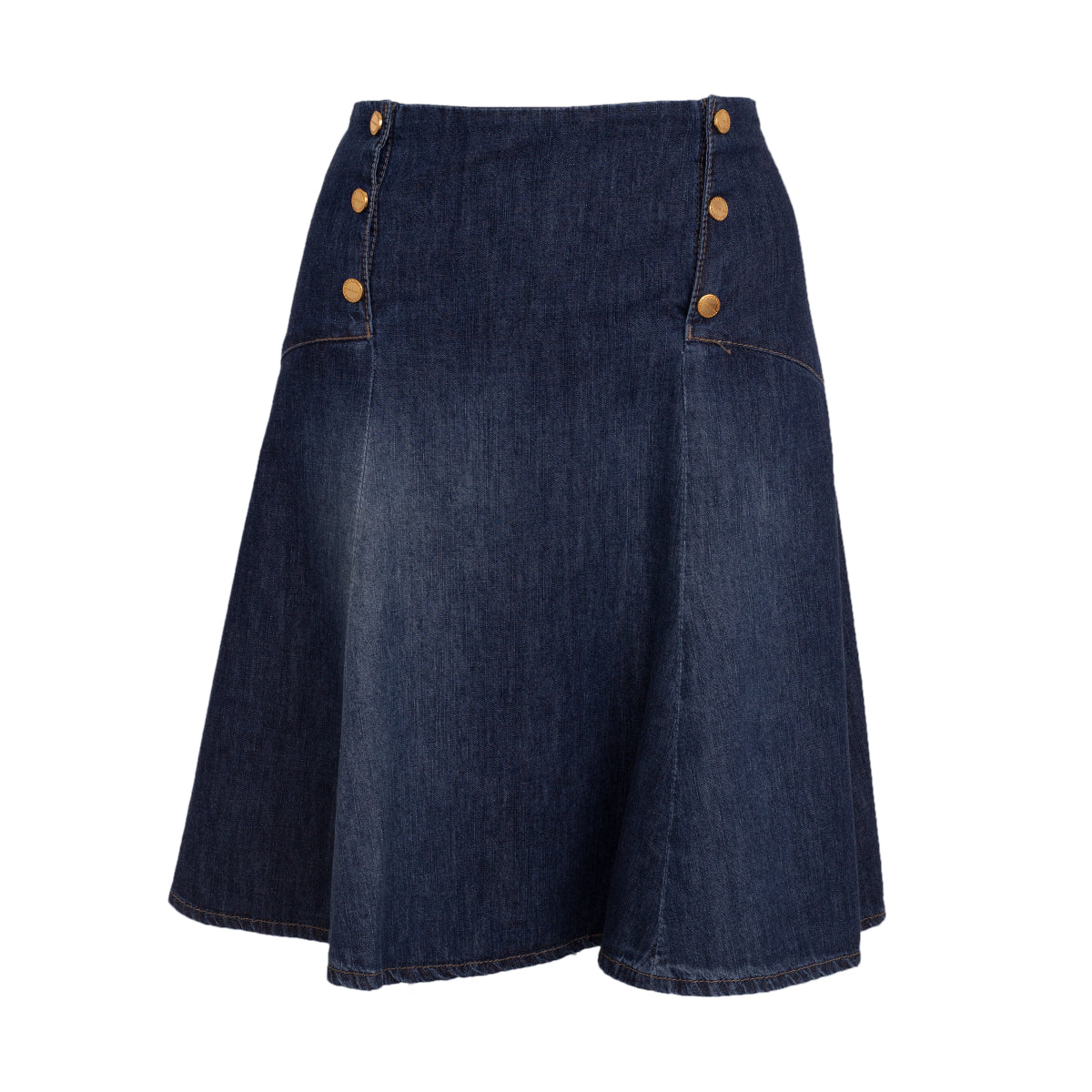 Detalhes: Saia Lily Sarty jeans confeccionada em algodão com botões dourados na parte frontal.